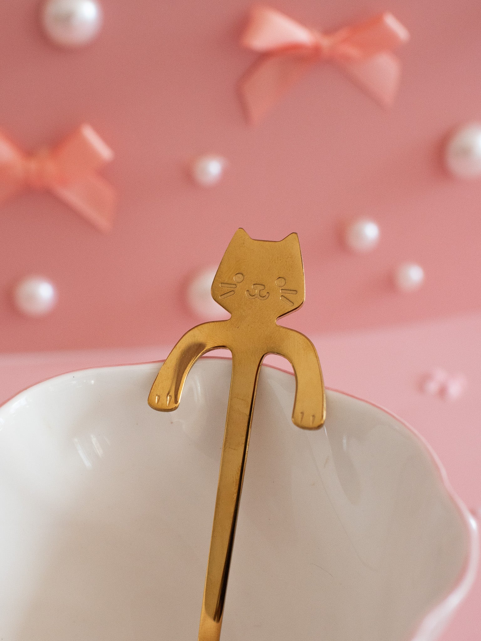 This gold teaspoon features a little kitty with arms that let it sit perfectly on the rim of a cup of (kit)tea. Sooo adorable and sure to be your new fav multi-purpose teaspoon!