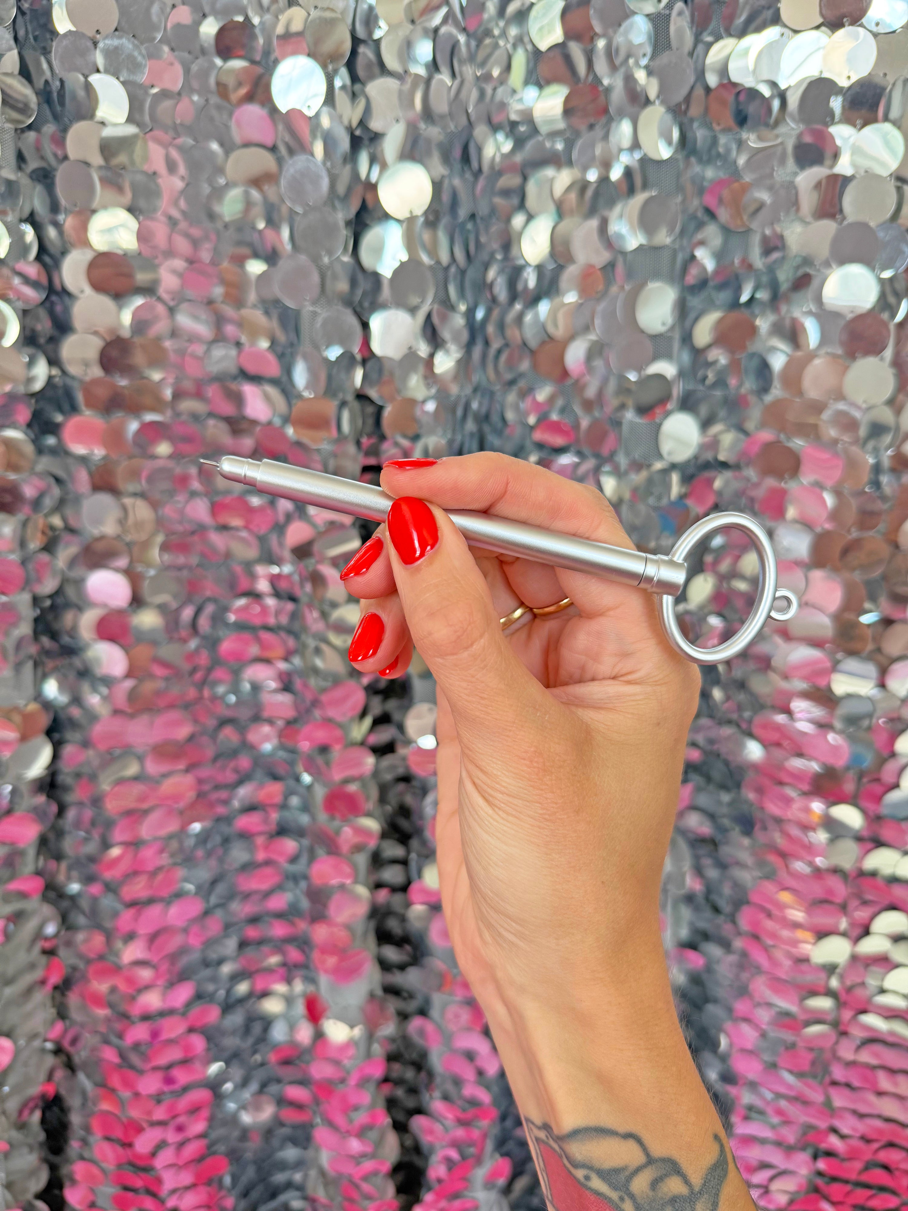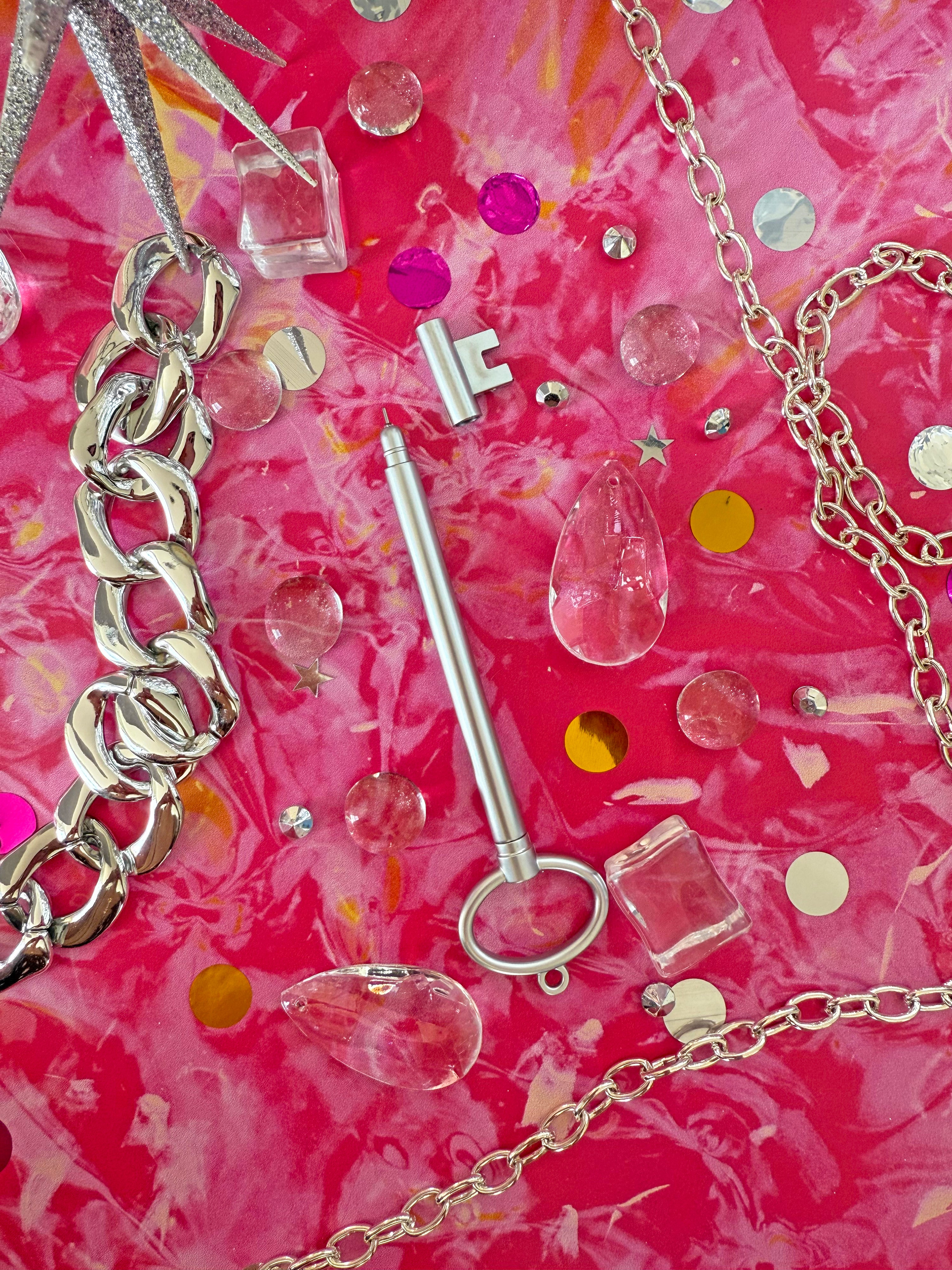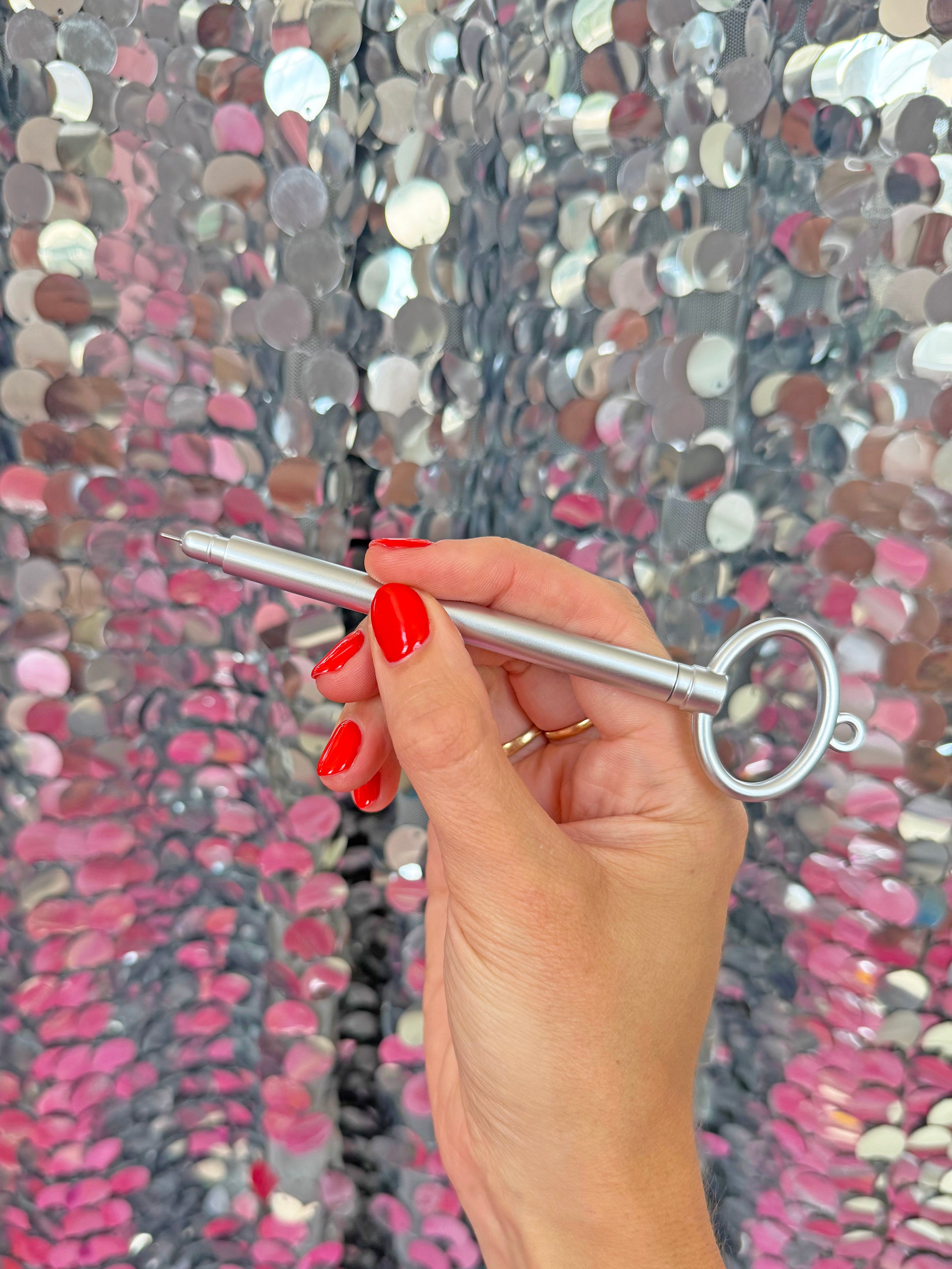 This silver, key-shaped pen is the key to our hearts! It looks adorable in your pen holder and makes the sweetest little gift. The notched end of the key doubles as a cap to keep your pen from drying out - cute and functional!