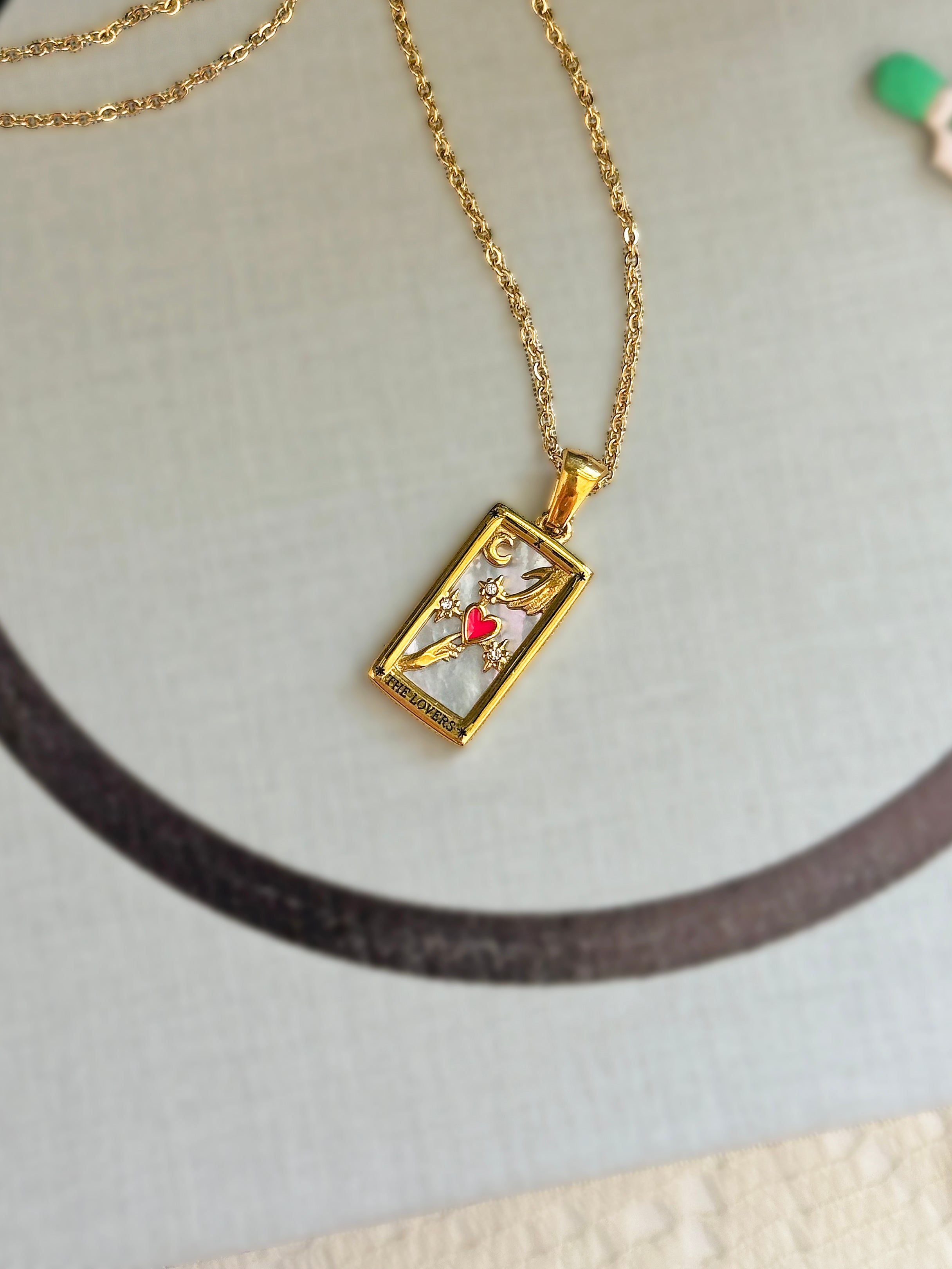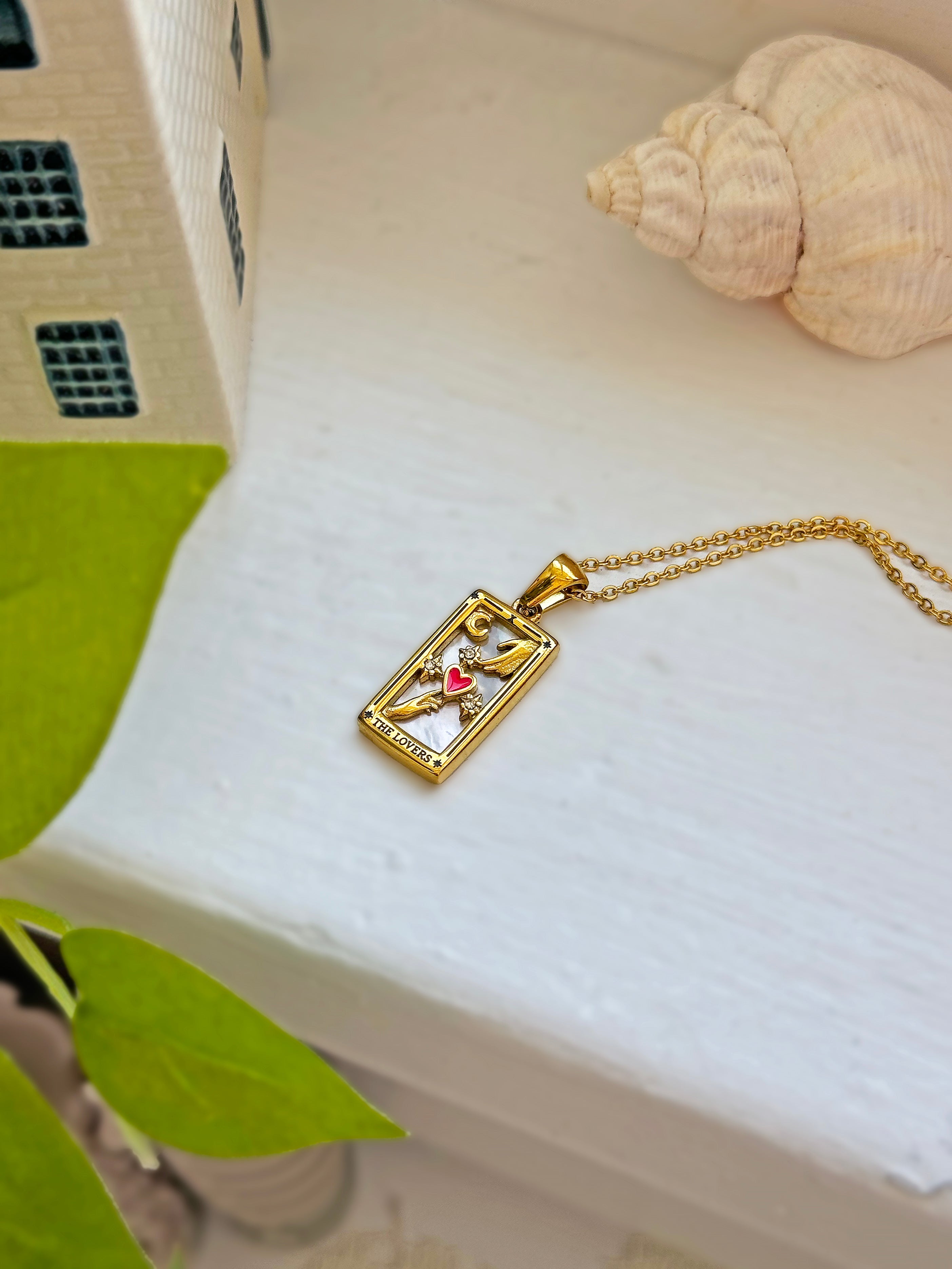 We can see this tarot card necklace in your future 🔮 Add to any outfit to sweeten it up! The Lovers Card represents love, beauty, and attraction.Â