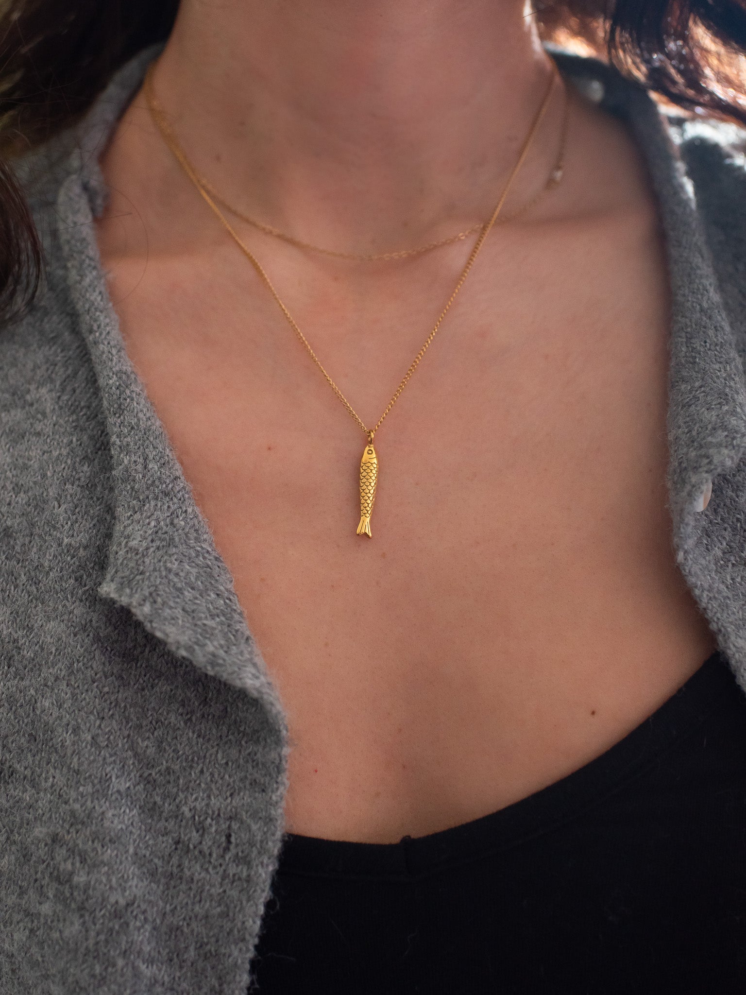 And by fish, we mean fish necklace of course! It features a cute fish pendant in gold and an adjustable chain with lobster claw clasp that measures 18" in length, plus a 2" extender! Pairs well with so many looks and is great for layering with other necklaces, too!