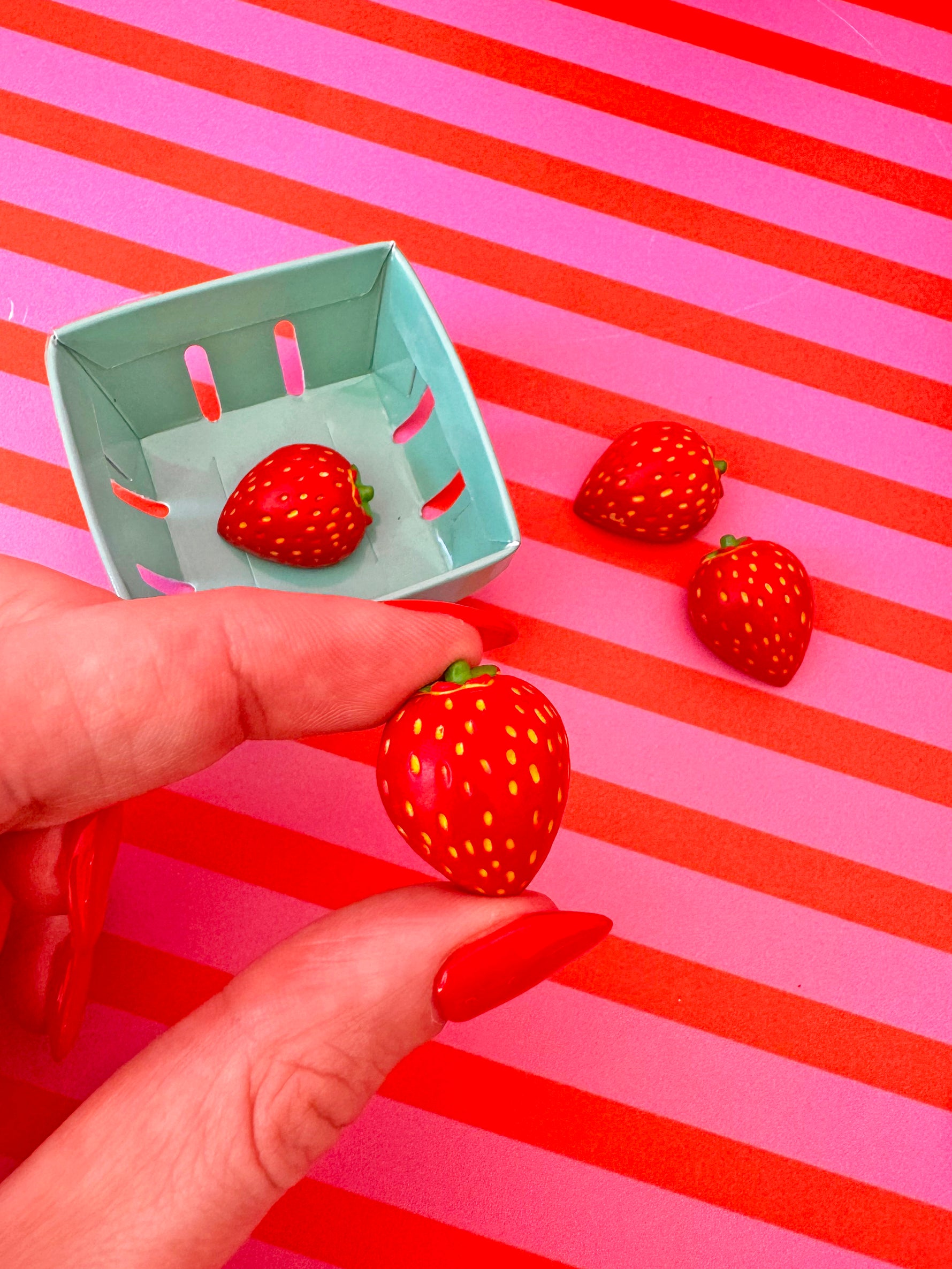 Jazz up your boring fridge with these adorable strawberry magnets! π Perfect for fridges, lockers, calendar boards, etc! Set comes in an adorable little fruit container!Β