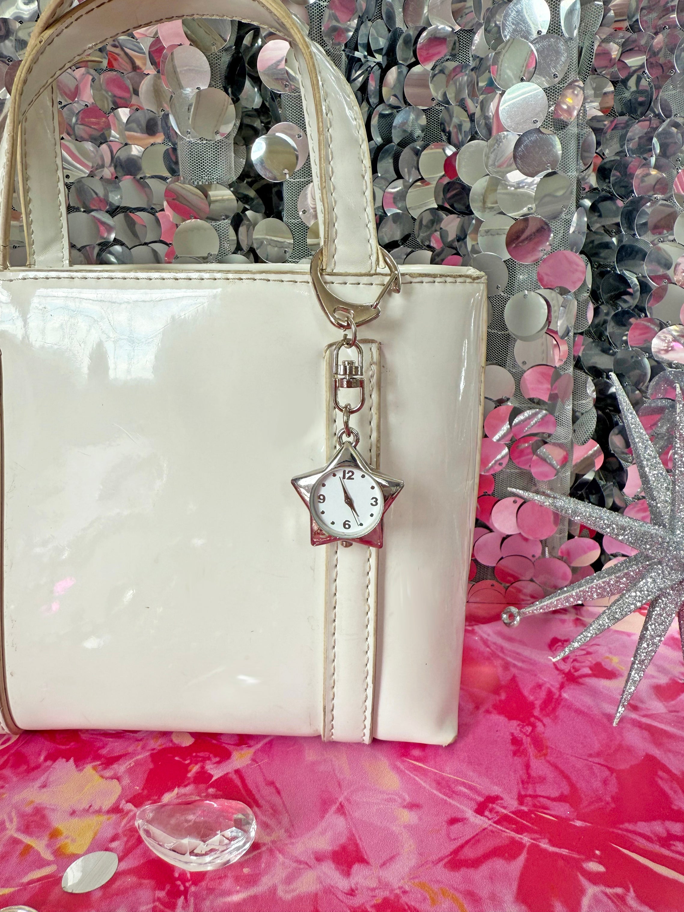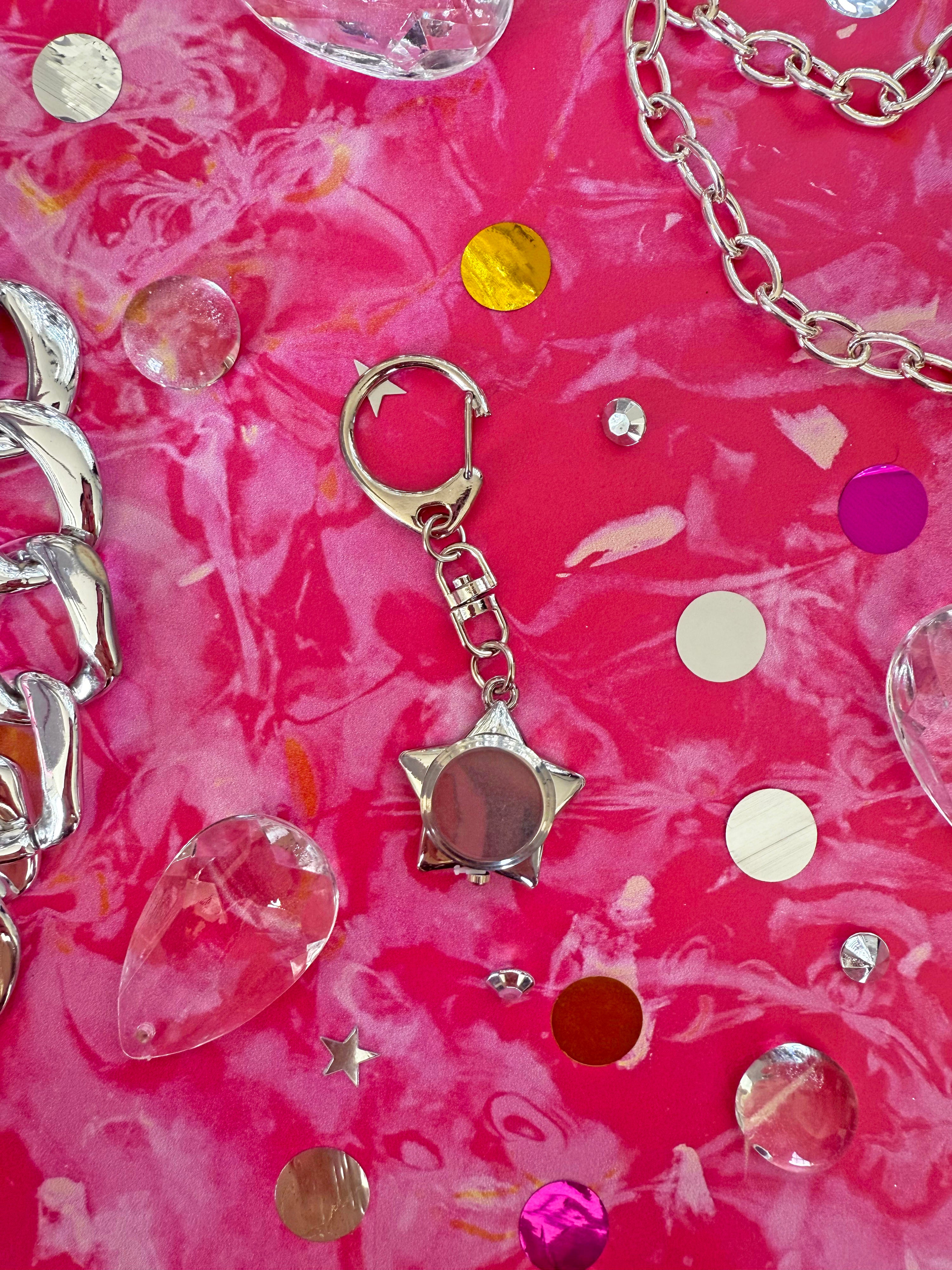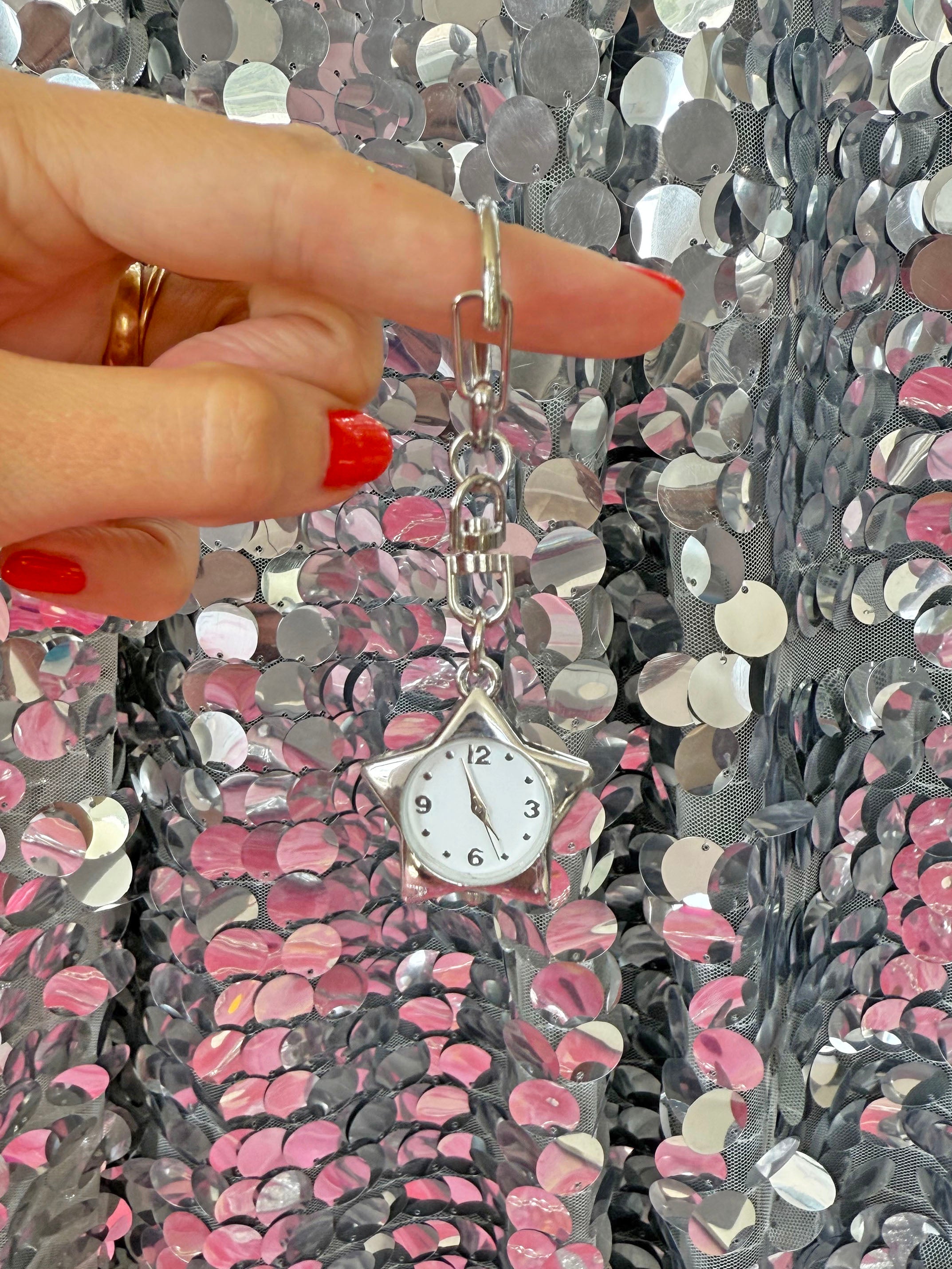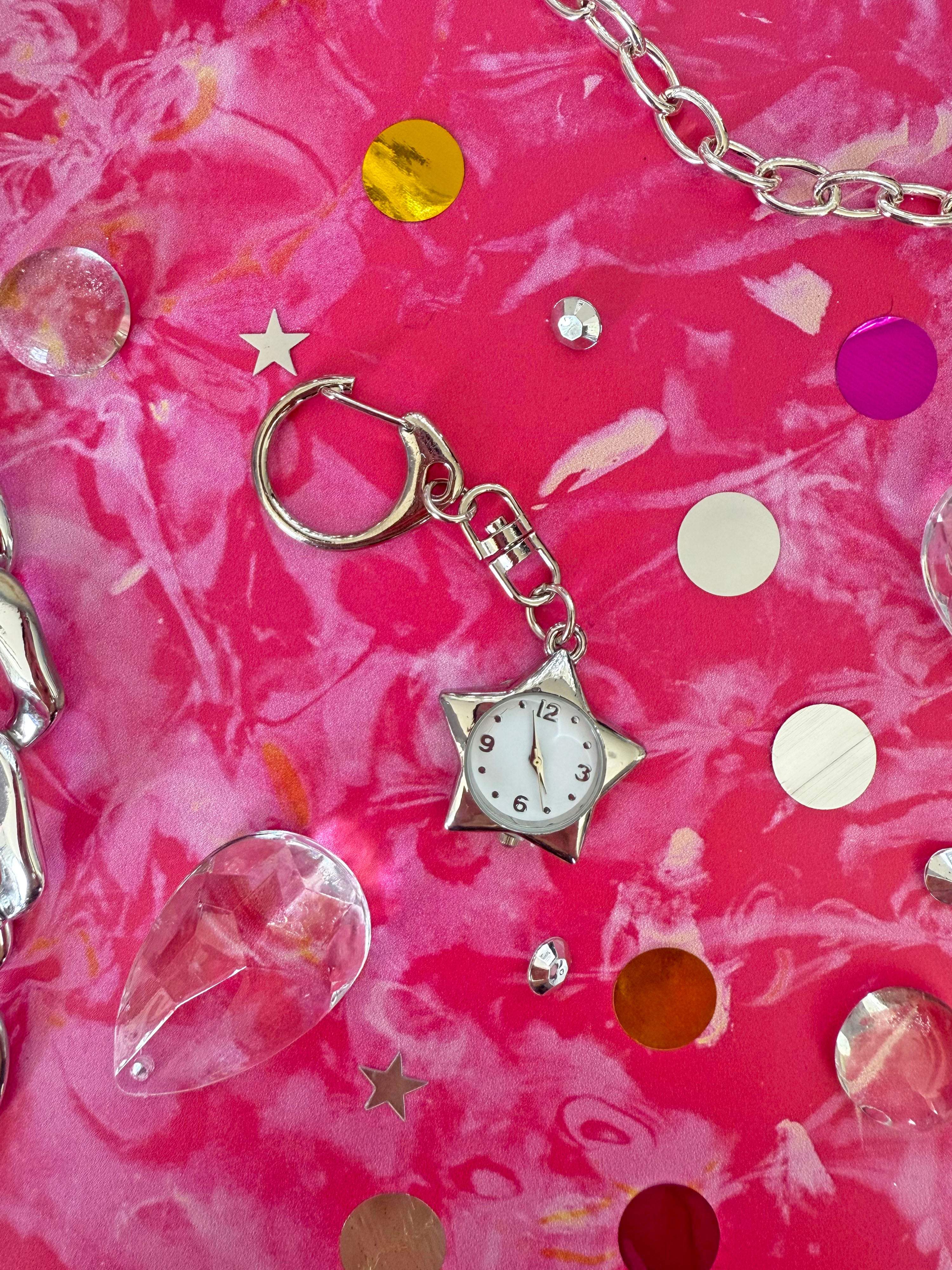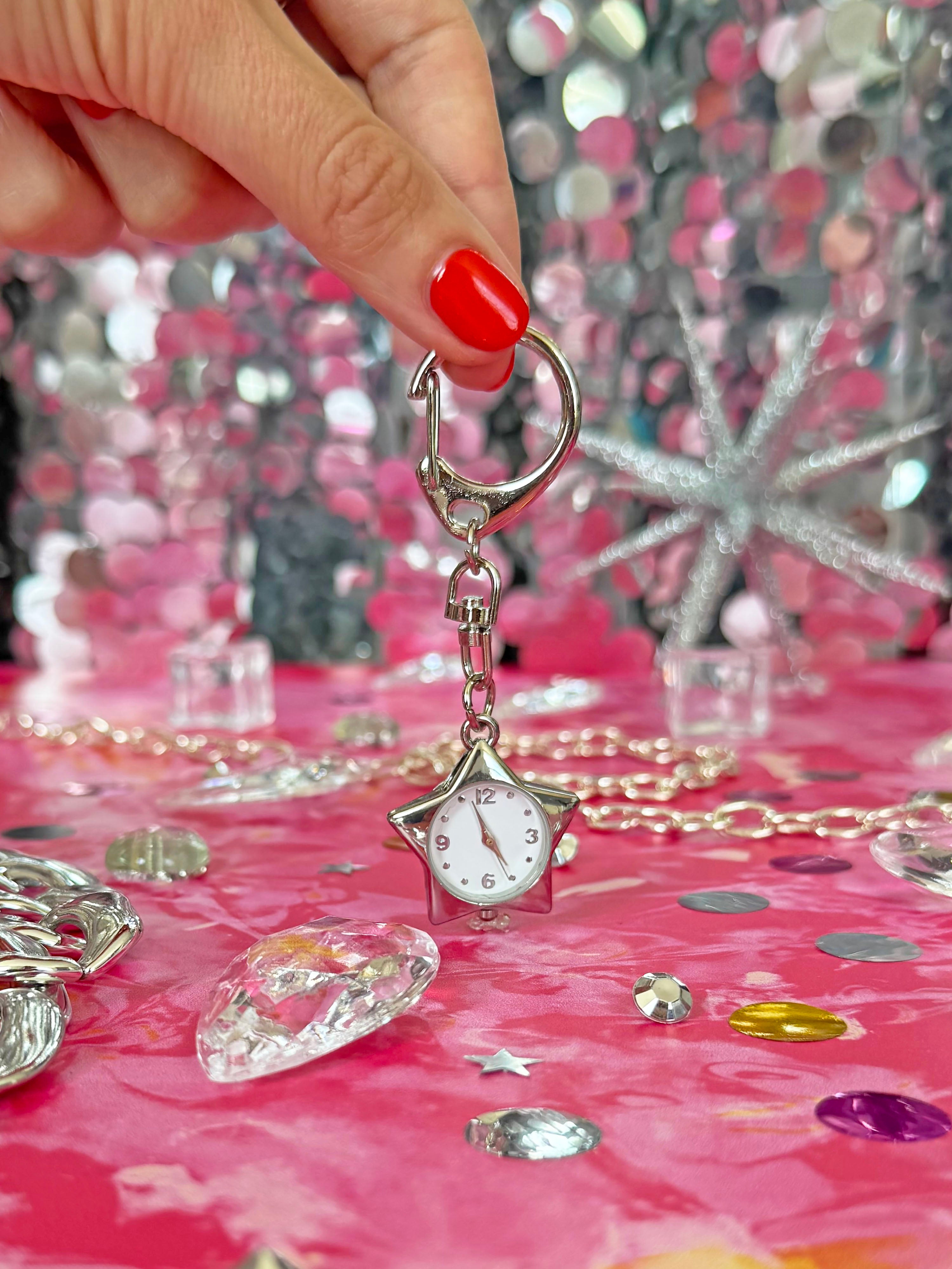 This silver star-shaped keychain features a white watch face and makes the cuntiest addition to your keys or bag! Comes with a silver stay-closed lobster clasp so you can easily clip it on/off without ruining your manicure.