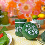 Looking for the perfect place to stash your goods? The timeless design of this stash jar is too cute to pass up. Made from jade green glass with our vintage blossom print and a glass top with rubber seal that keeps your stash fresh!