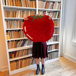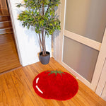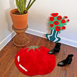 Measures 30" x 25". Design is a classic beefsteak tomato. Slip resistant backing, so no need to get rug tape! Made from 100% polyester, can be machine washed, but we recommend hand washing. Do not iron, air dry only.