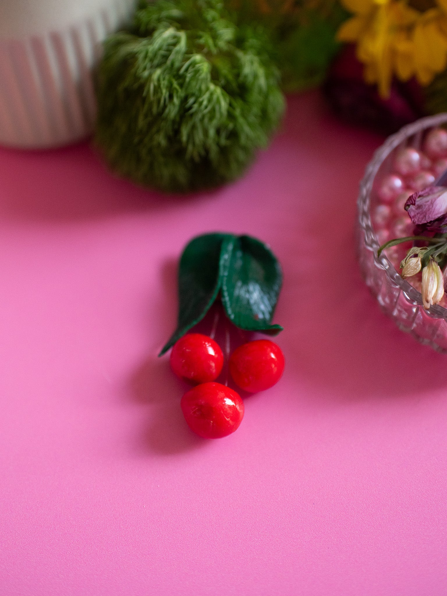 Jazz up your boring fridge with this adorable cherry magnet! Features 2 green leaves with 3 cute little cherries dangling below! Yummy. Perfect for fridges, lockers, calendar boards, etc!