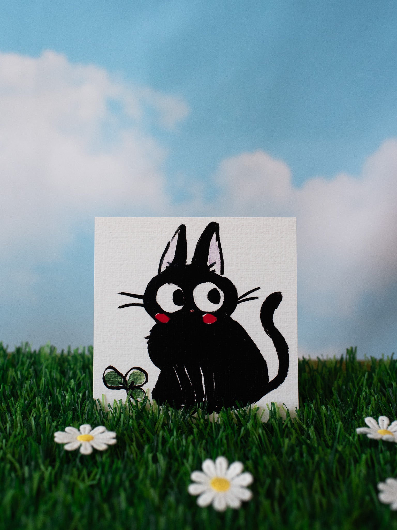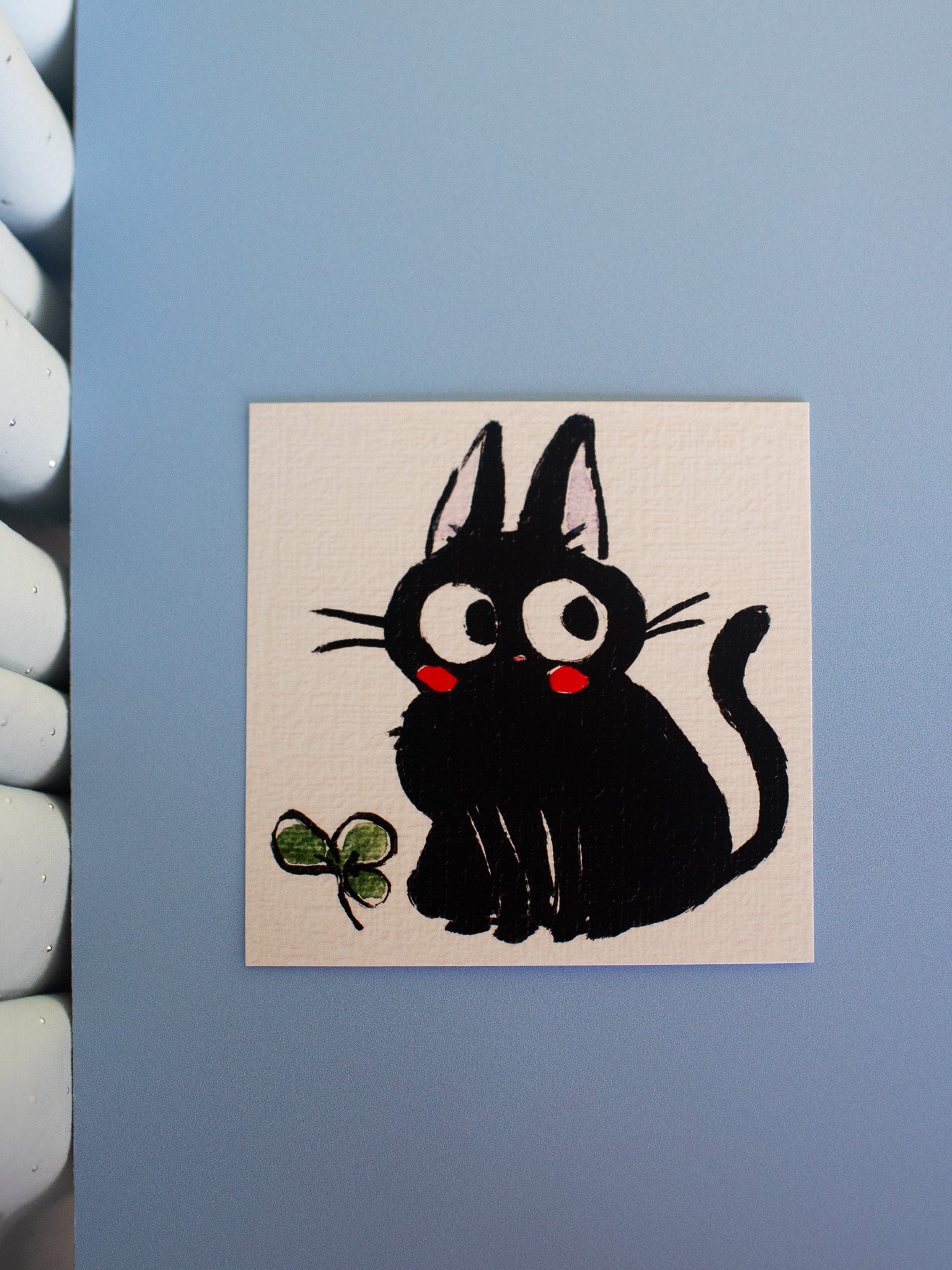 This print features Jiji from Kiki's Delivery Service! Made by artist Rebekah Evans, this watercolor print looks adorable on a shelf and makes for the sweetest gift!