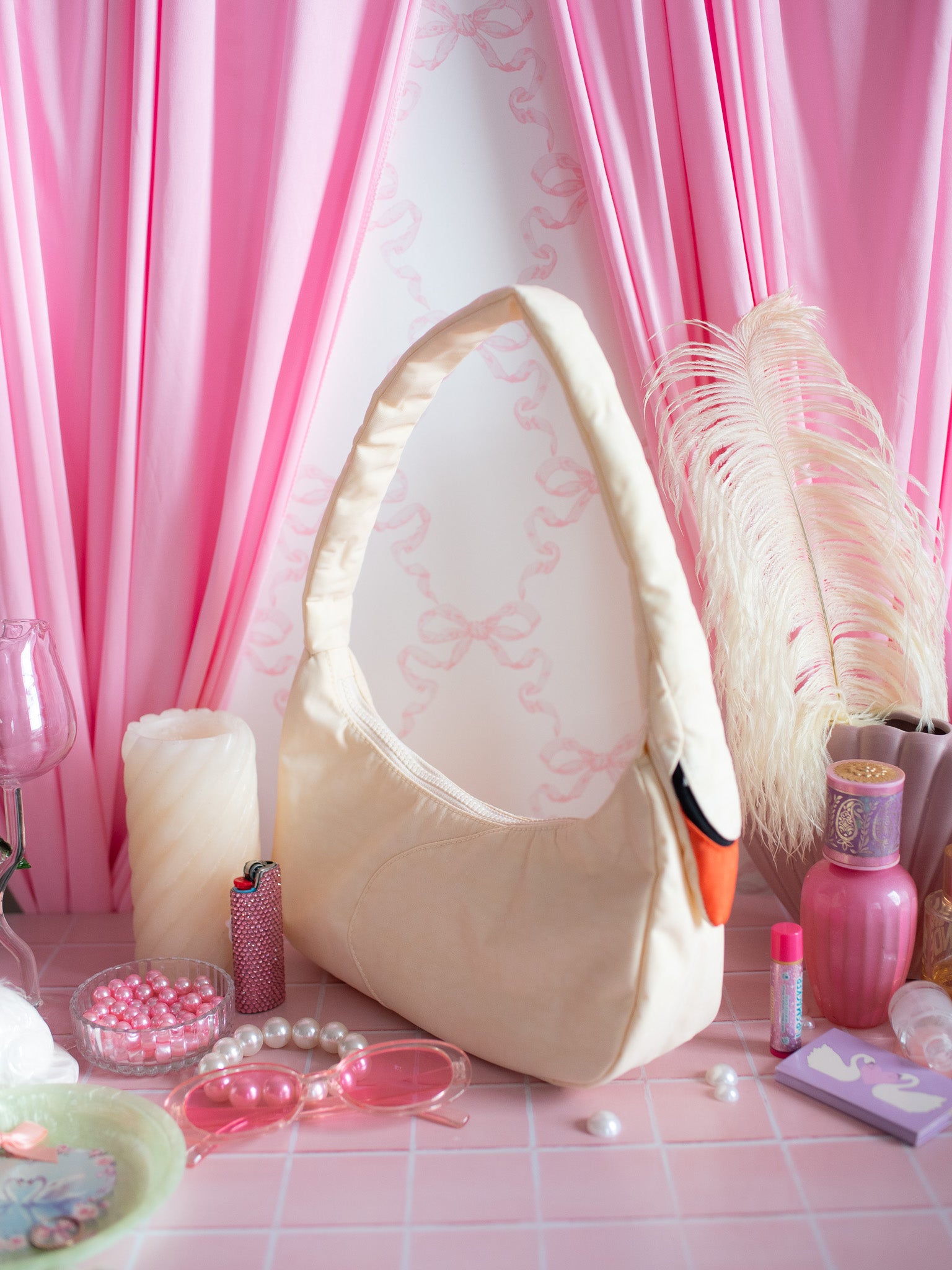 Sound the trumpets! The most iconic of Baggu bags just dropped on our site. Have you ever seen a more perfect shoulder bag?! The strap is padded for comfort with an 11" drop and is made to look like a swan neck/head, while the body of the bag mimics the body of the swan! Perfect size for holding all of your essentials and has an interior zip pocket for extra storage space!