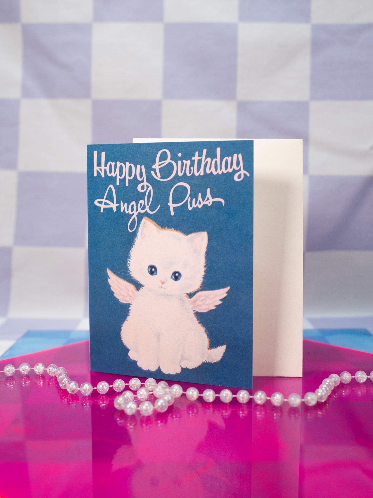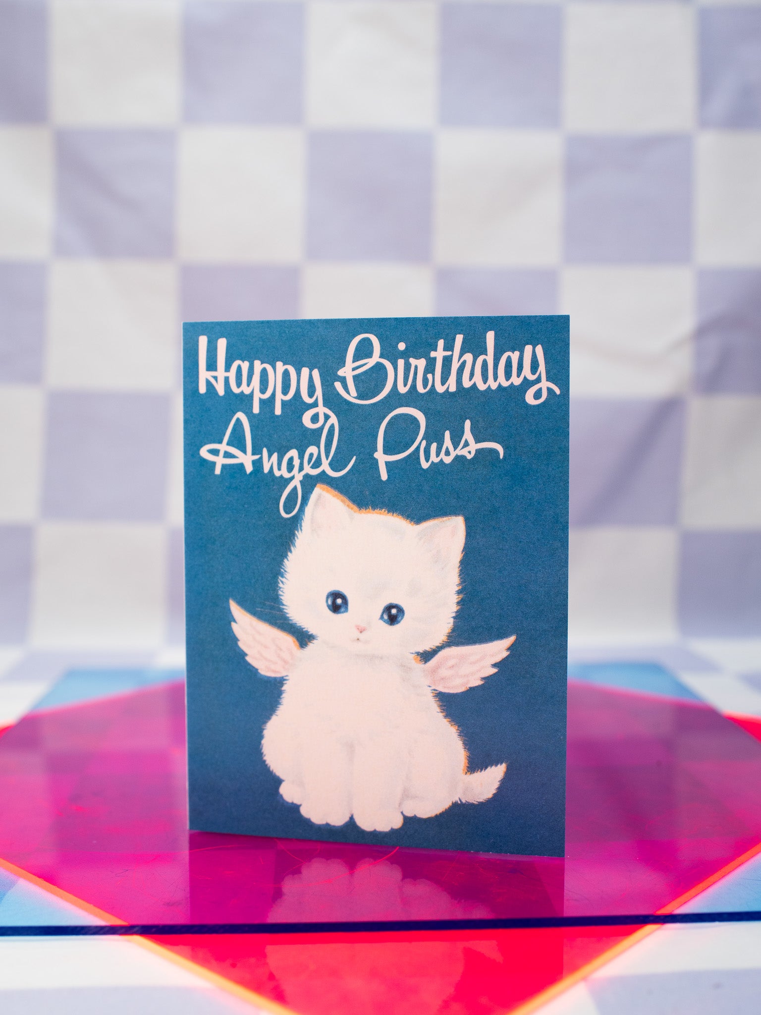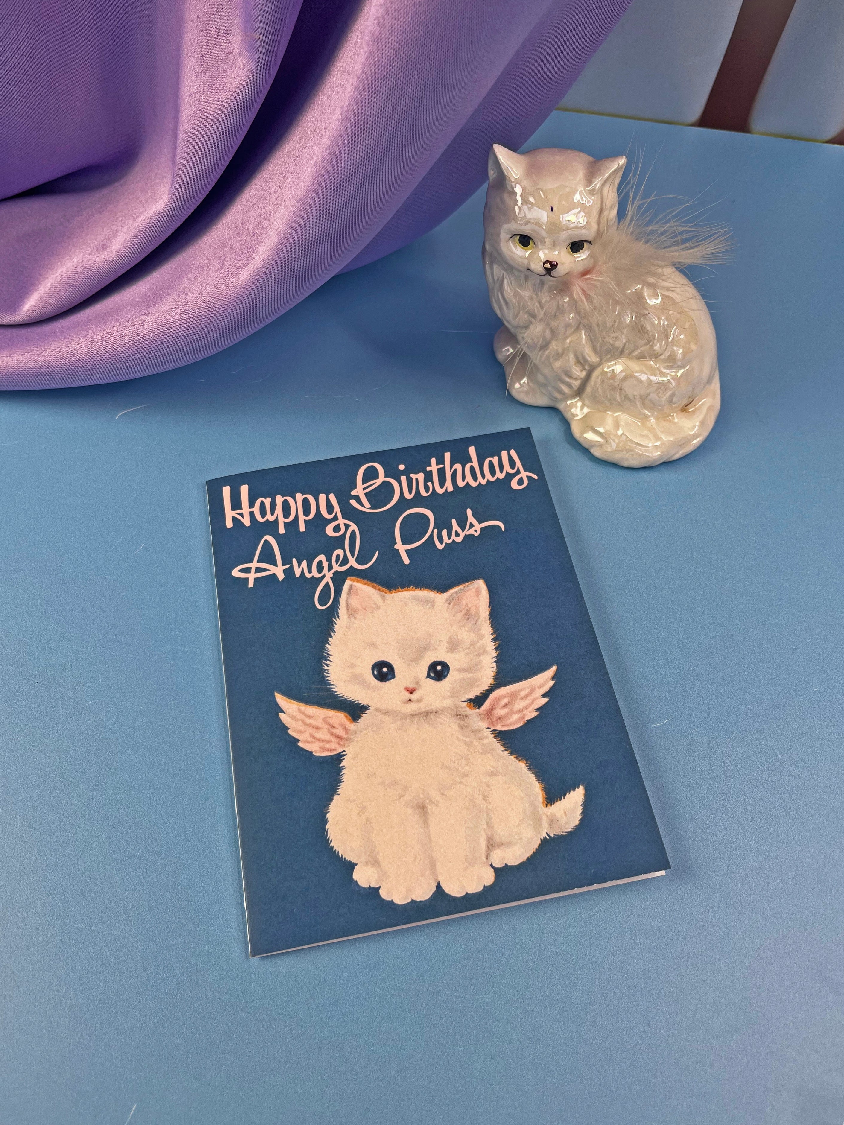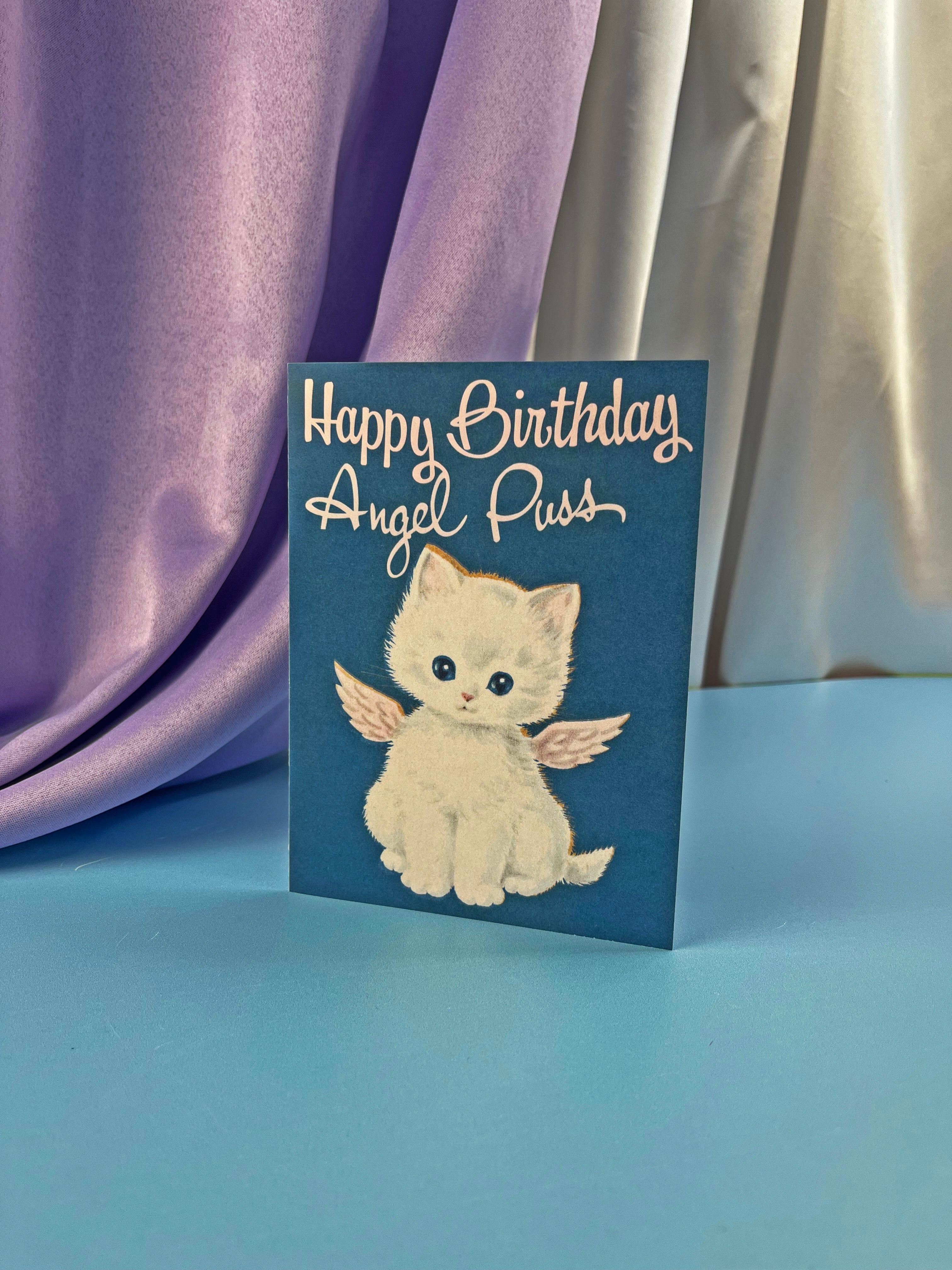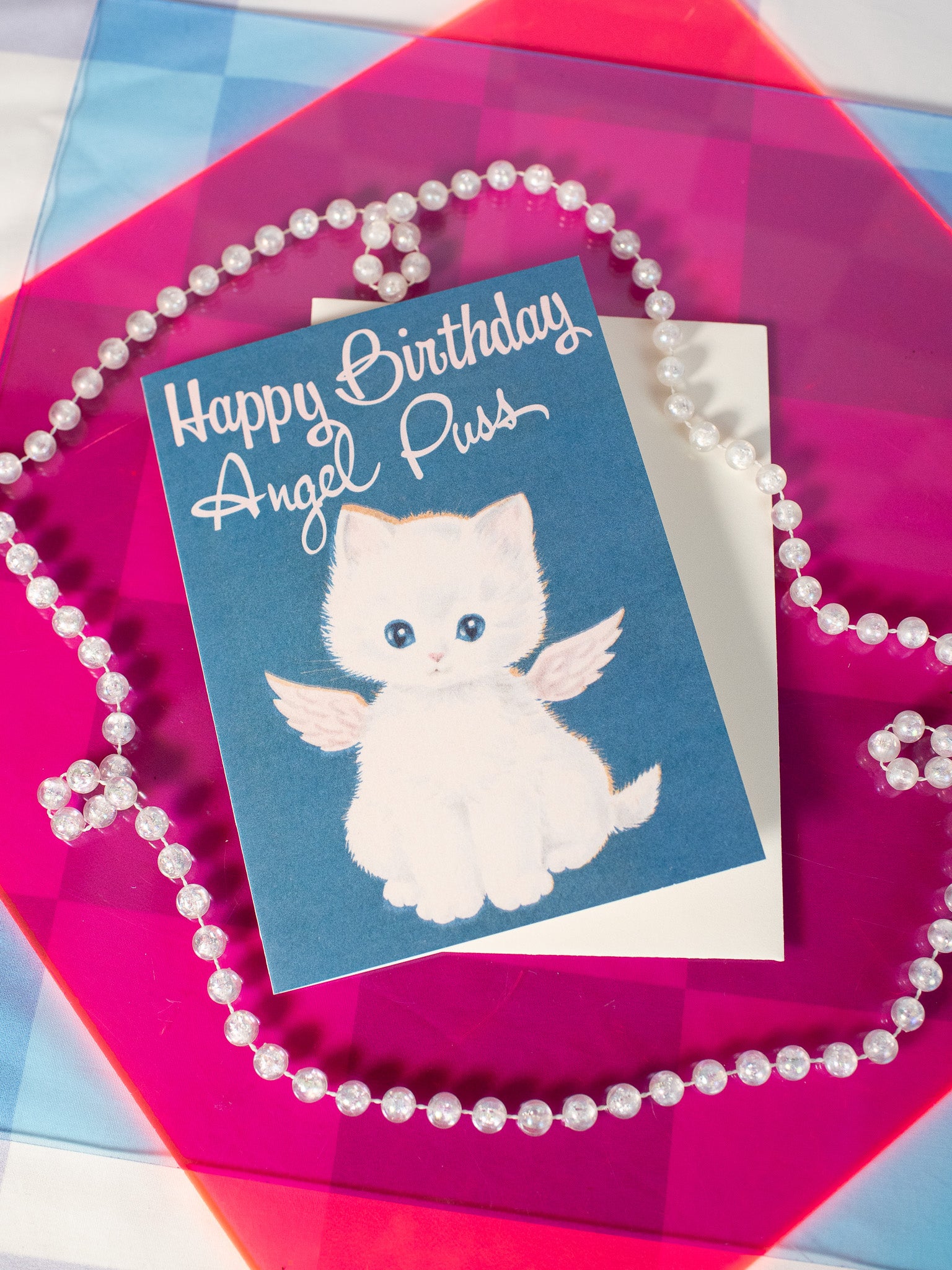 Looking for the cutest birthday card on the internet? Look no further, because you found it here! This adorable card features a little white kitten with angel wings and is sure to pull favor from the person you give it to! AWWWW!
