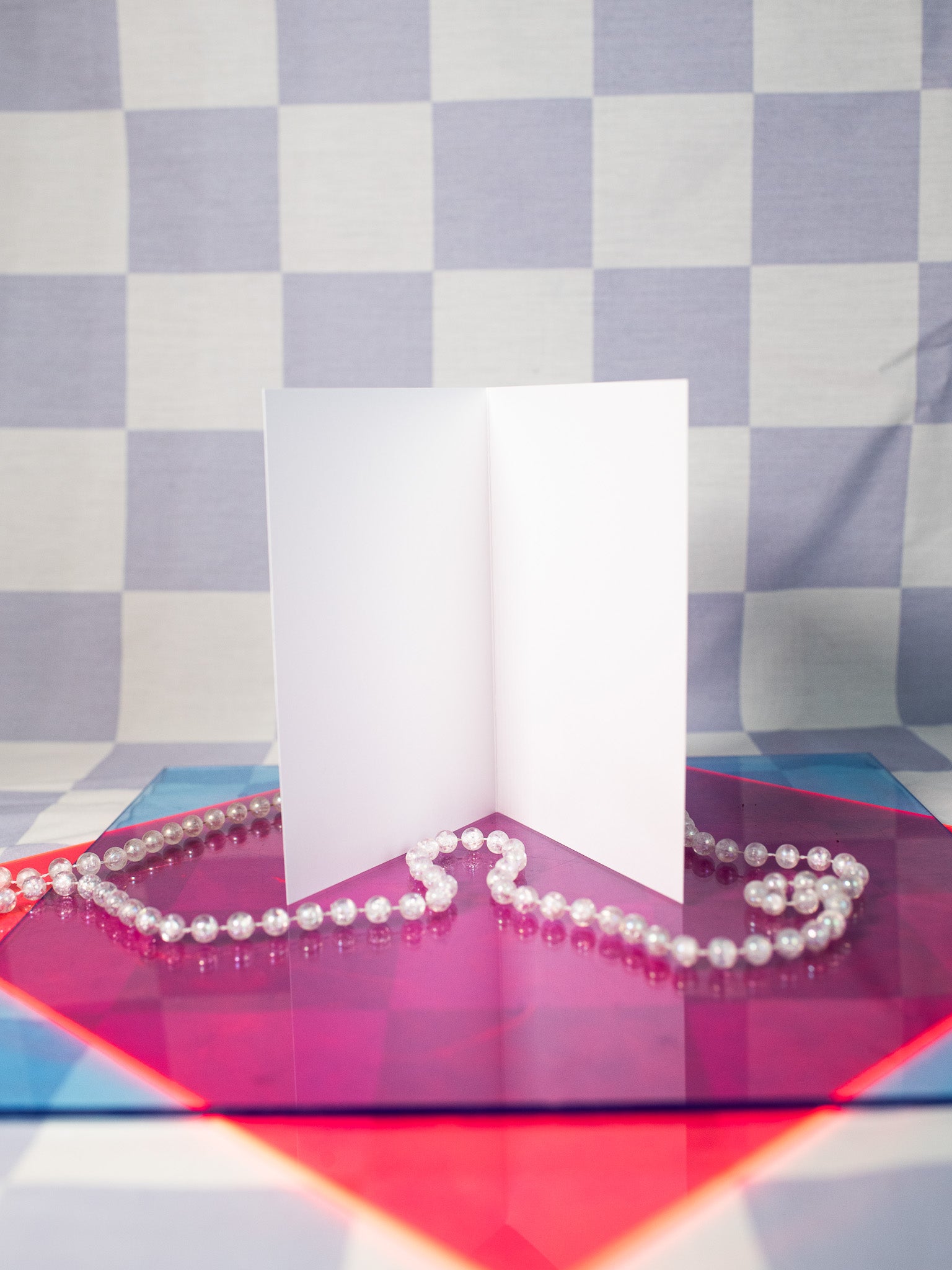 Blank inside so u can tell them how you really feel. Card is blue with pops of pink and white and comes with a soft white envelope.
