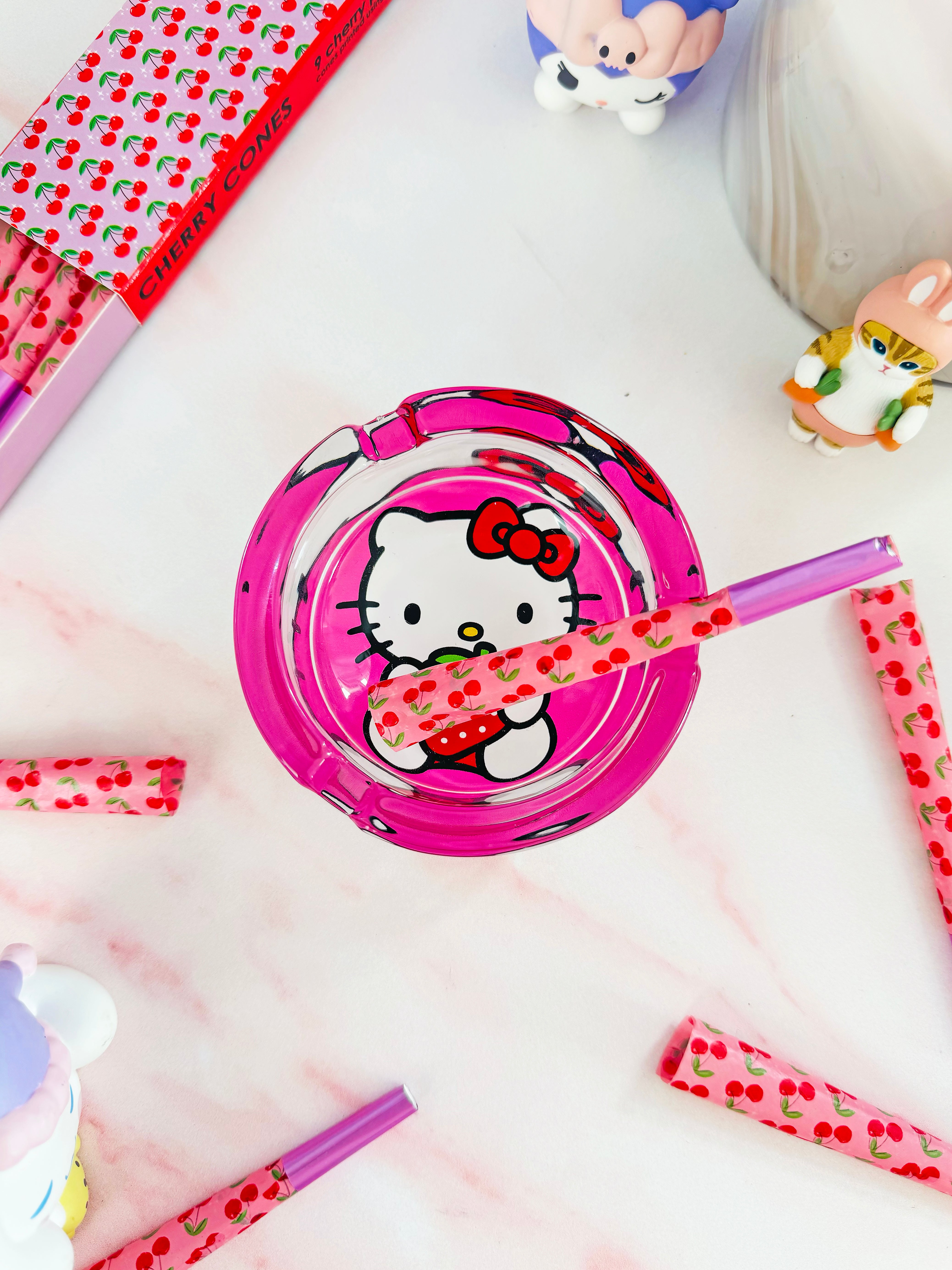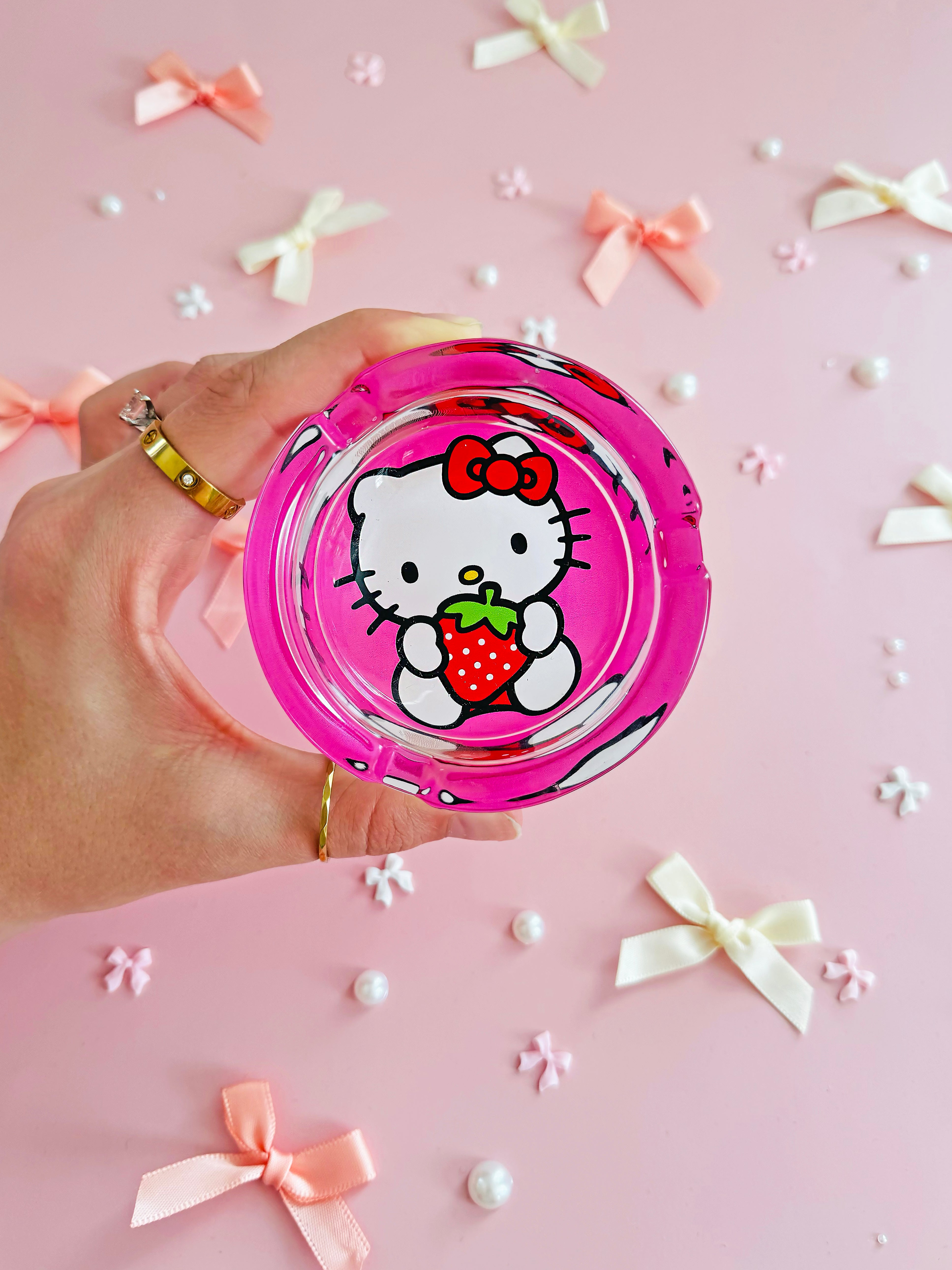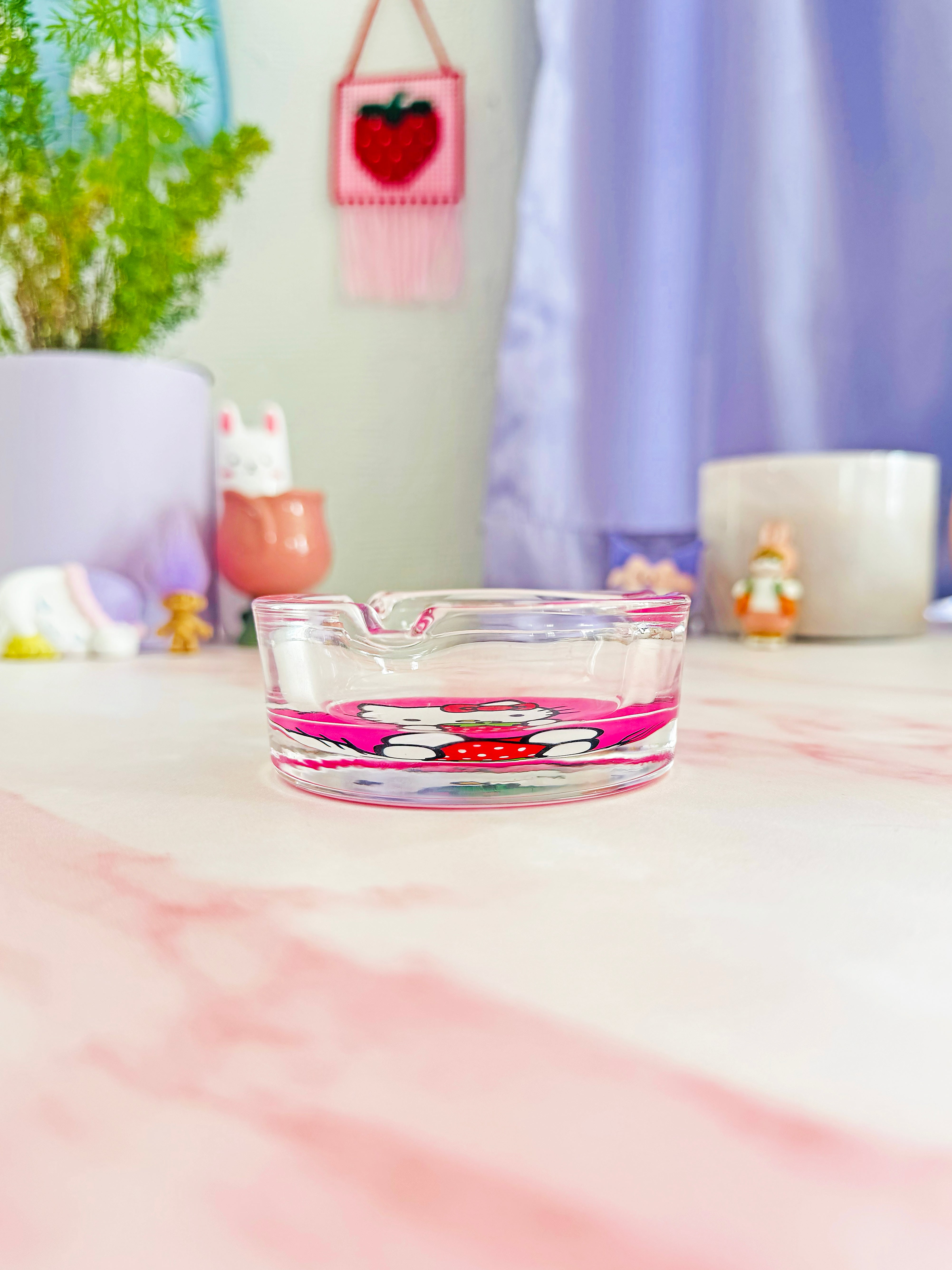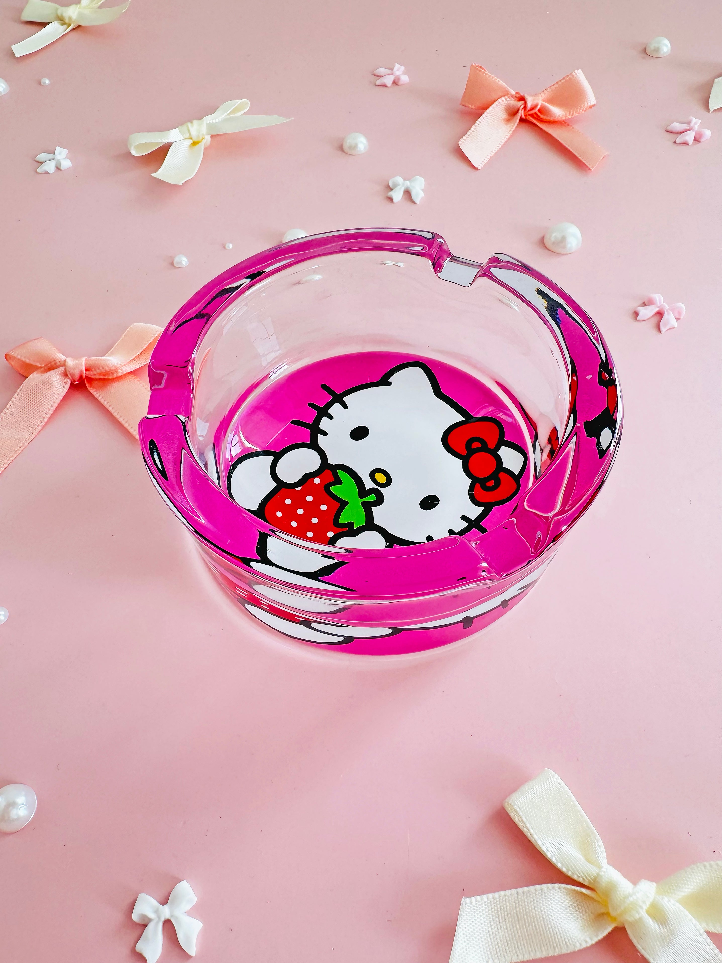 This glass tray is so cute and features everyone's favorite cat holding a cutie little strawberry 🍓