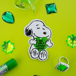 This sticker features snoopy vibing w some Charli xcx lyrics.