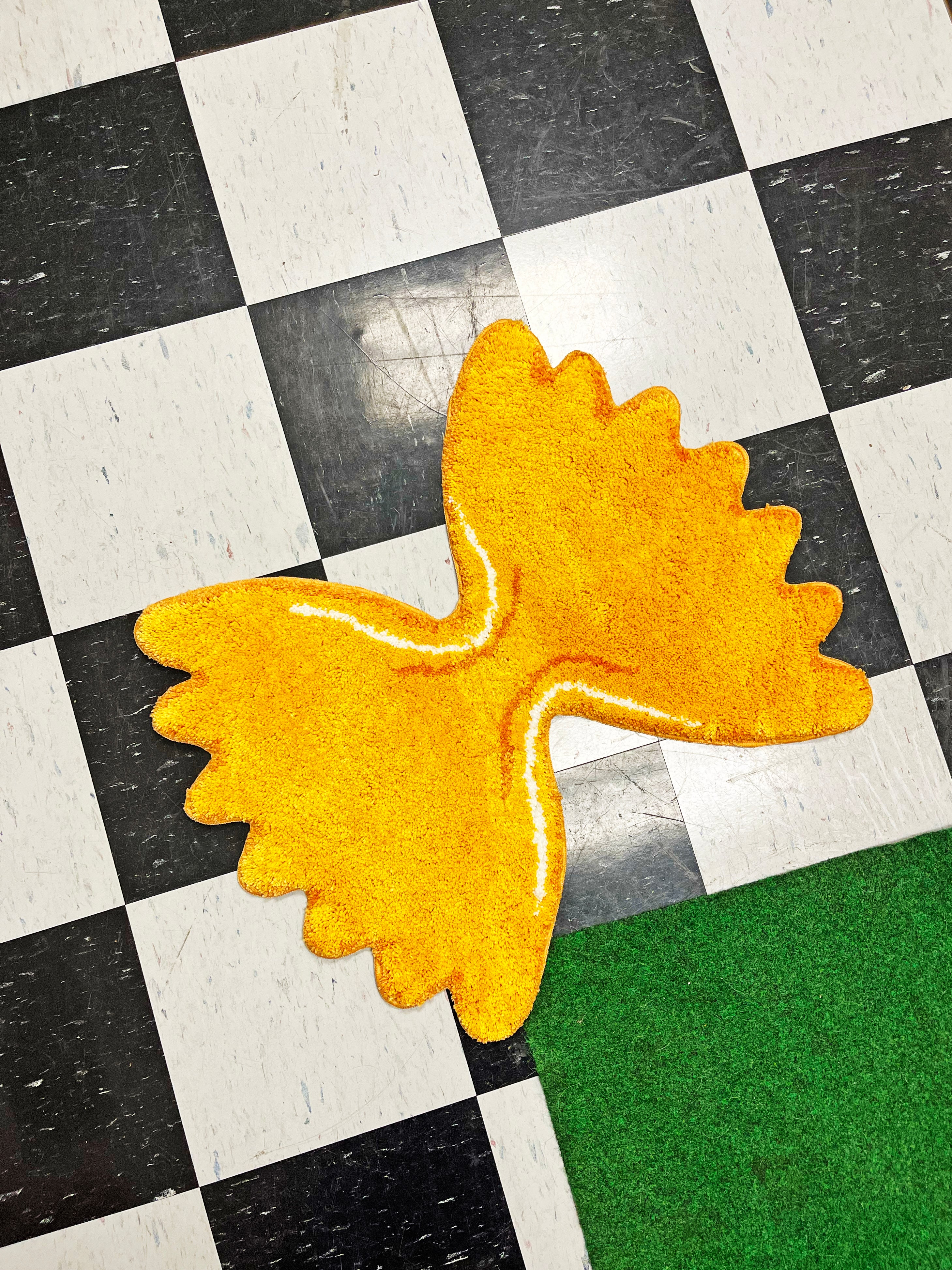 Shaped like bowtie pasta, this rug will go perfectly as home decor, whether you use it as a rug or hang it on the wall!