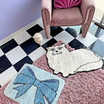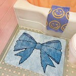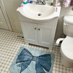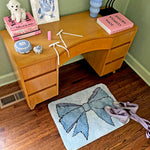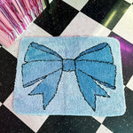 In our coquette era until further notice. How darling is this pretty blue bow rug??