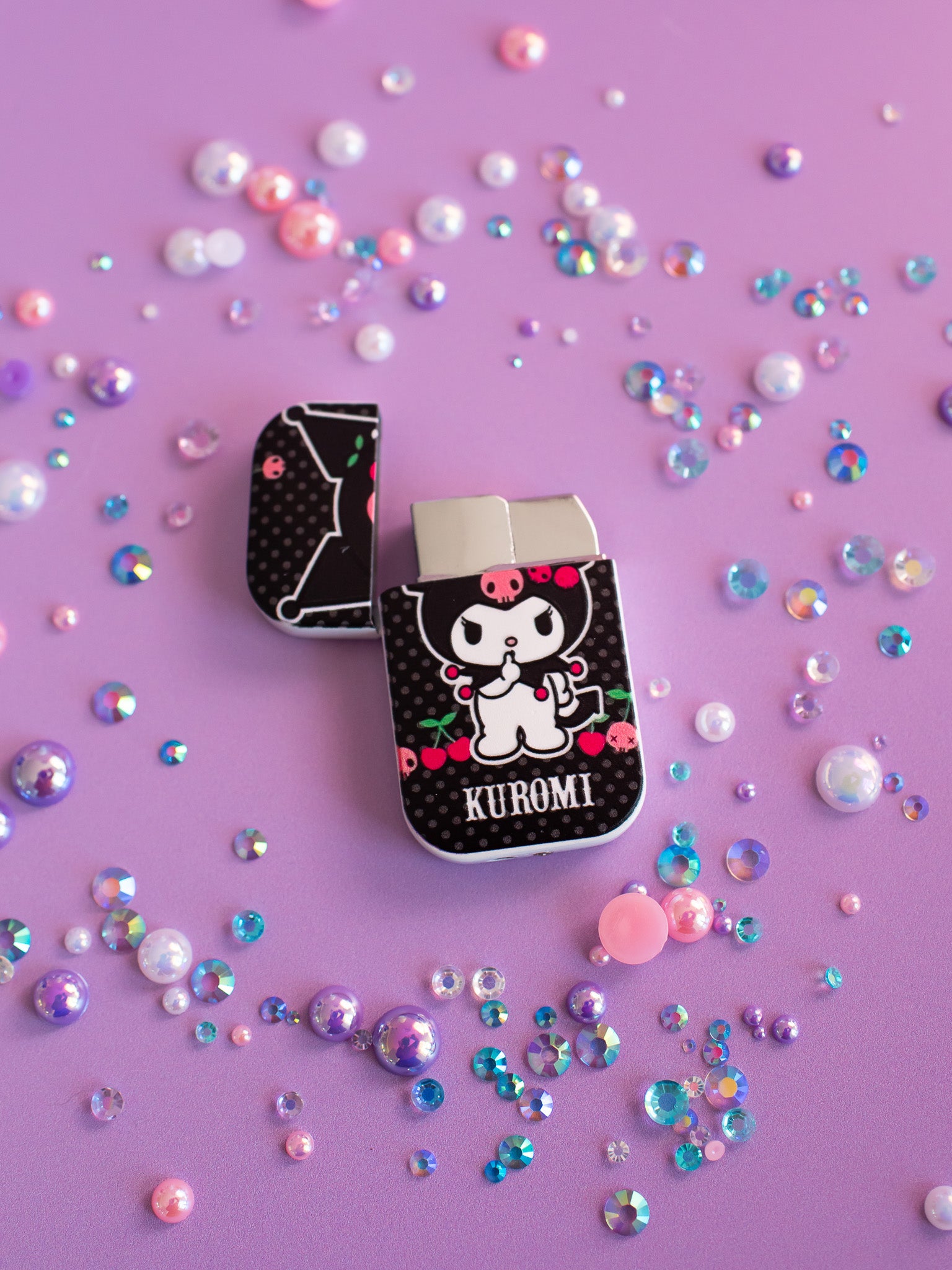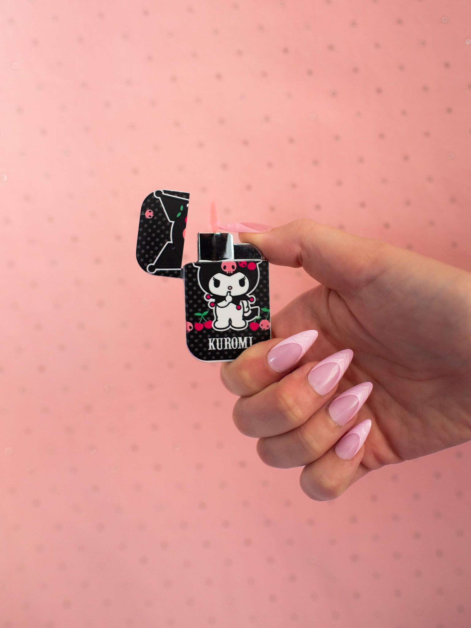 Lighter measures 2" x 1.5" x 1" and has a pink flame.ย