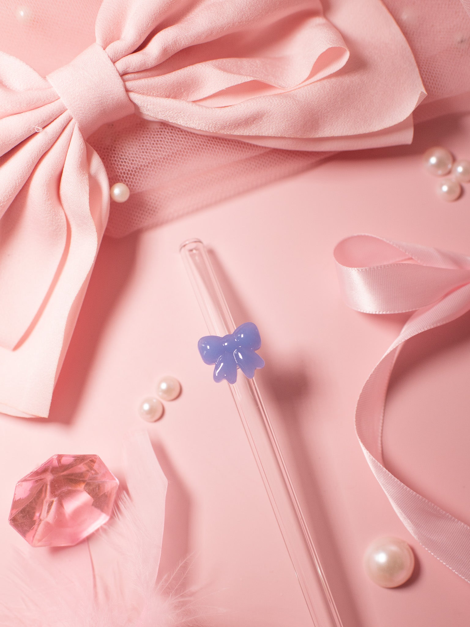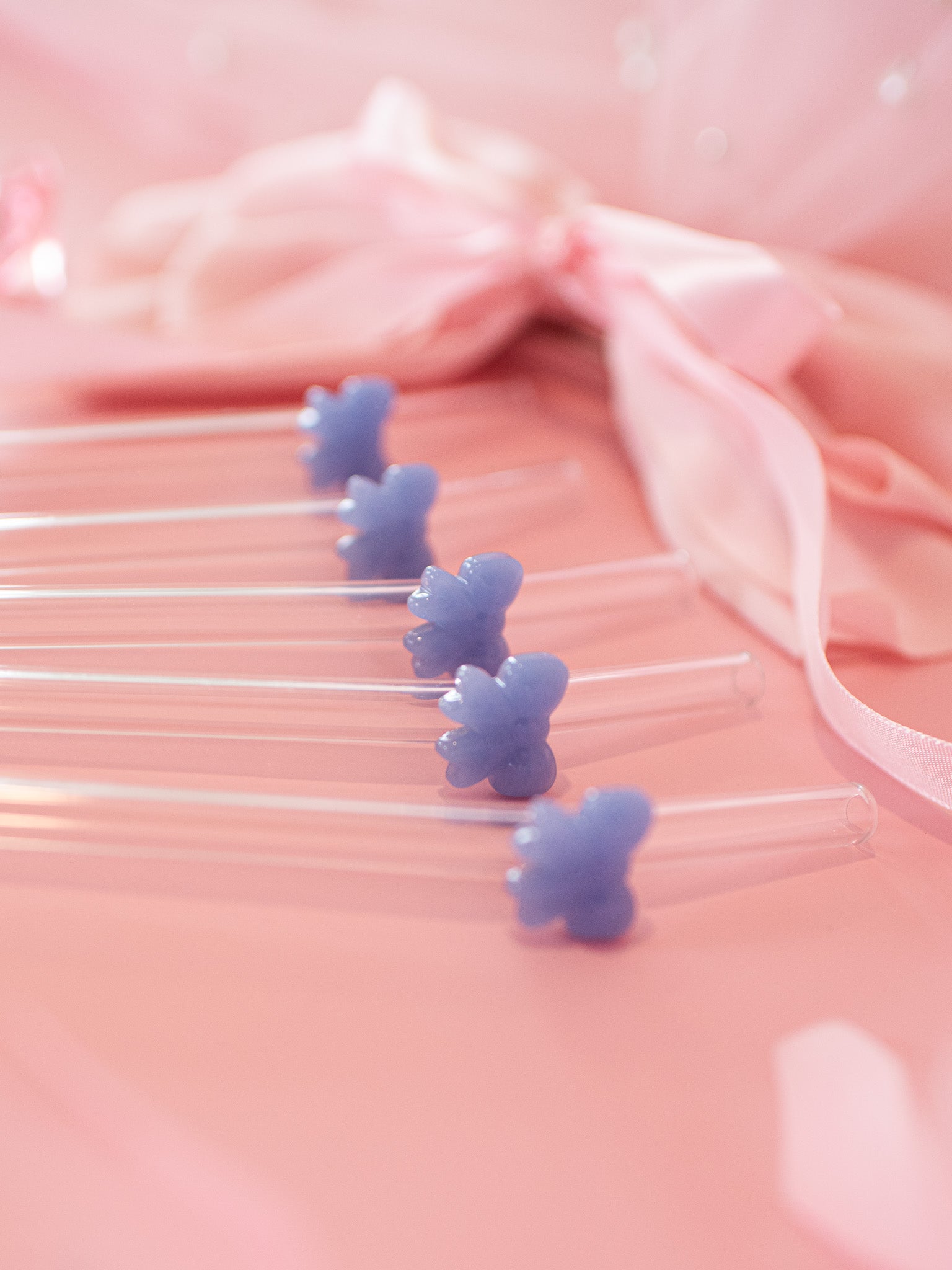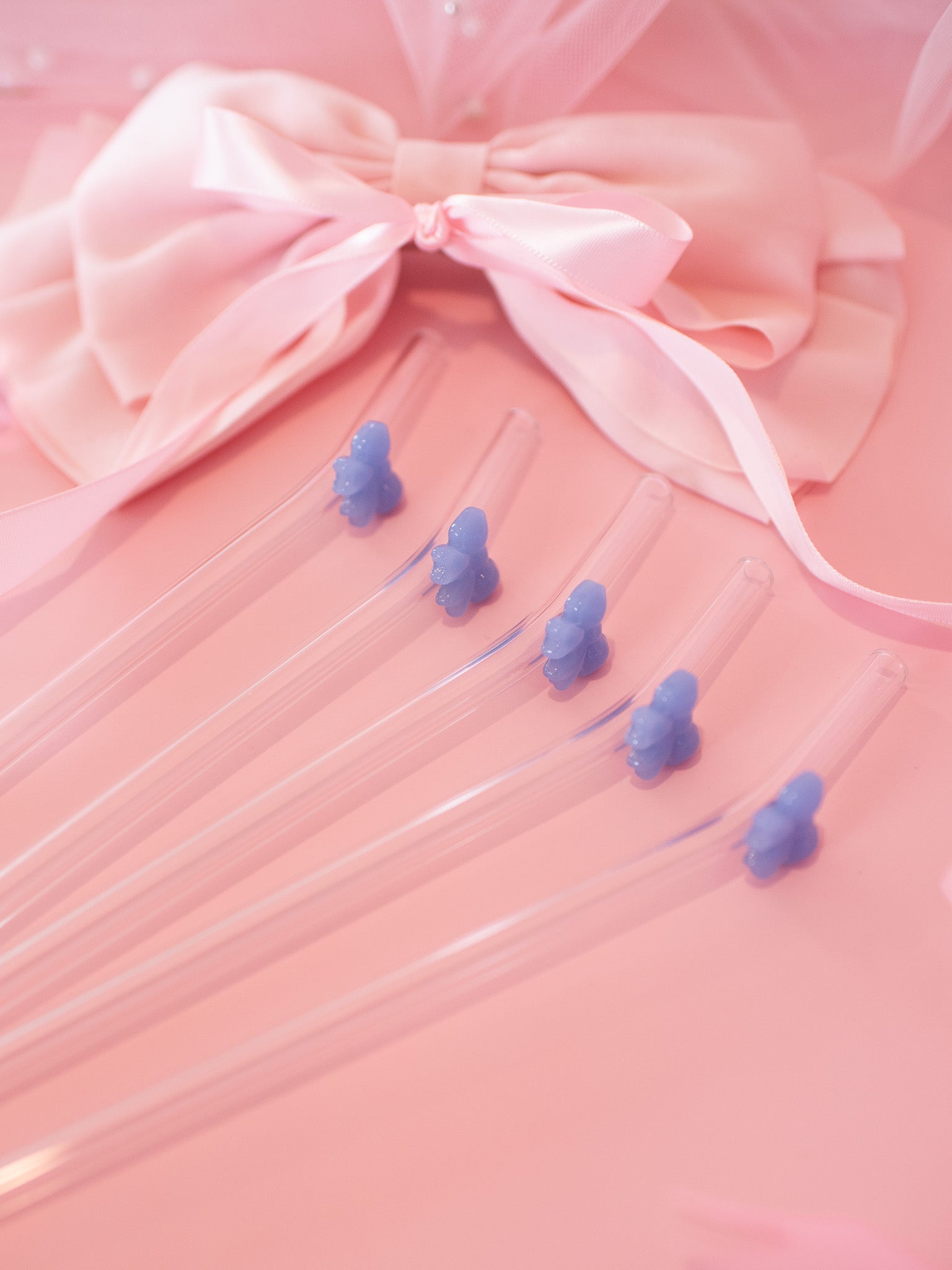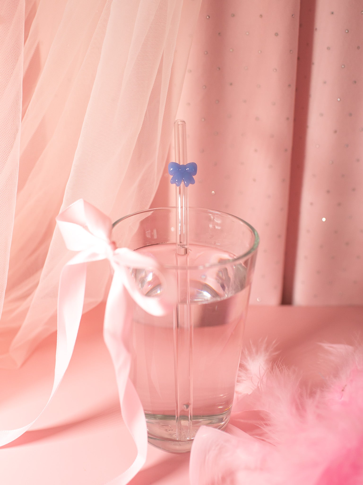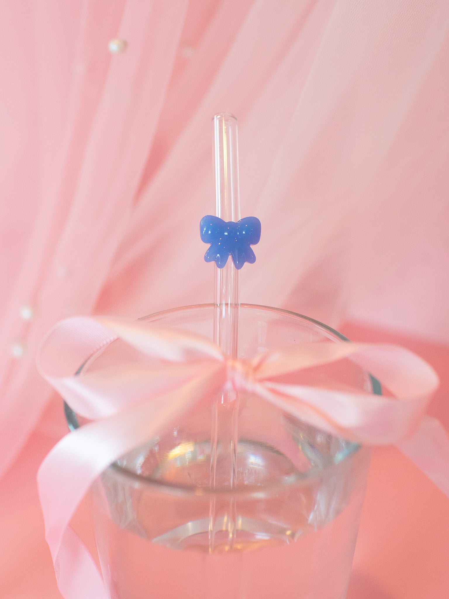 Made of glass, so no chance of that weird metallic taste you get with some metal straws. Features one little jade blue bow at the top of the straw. So cute!Â