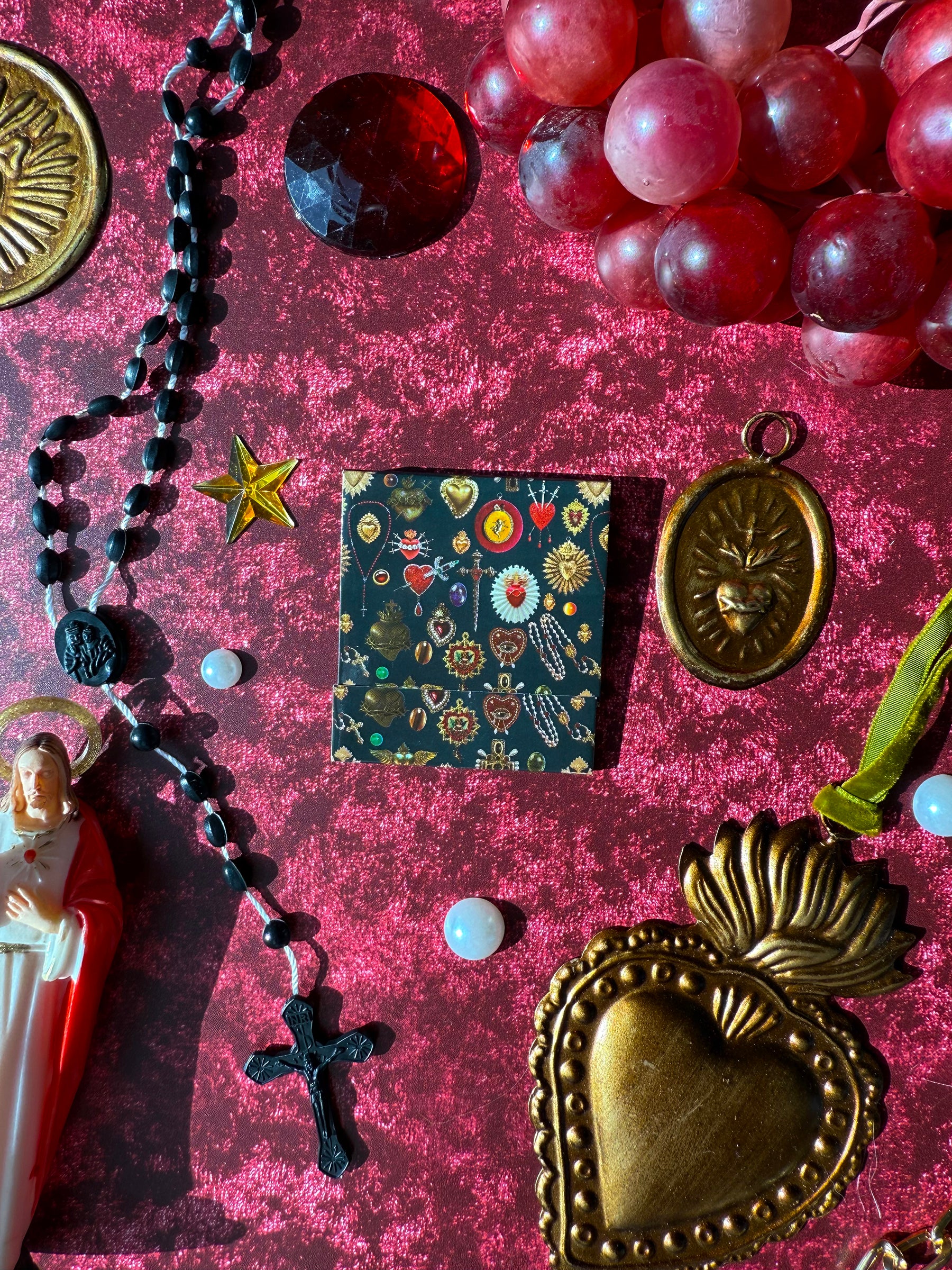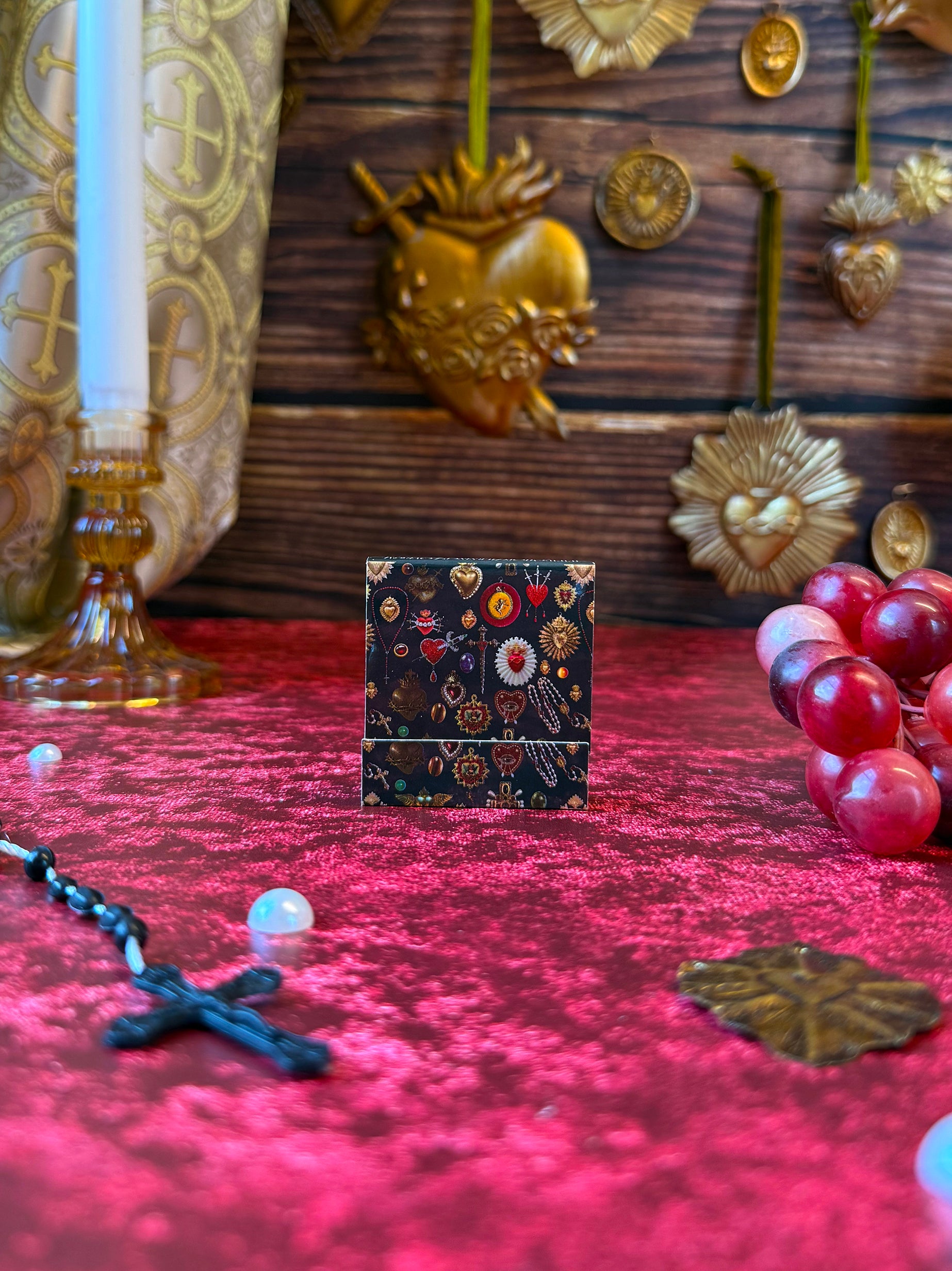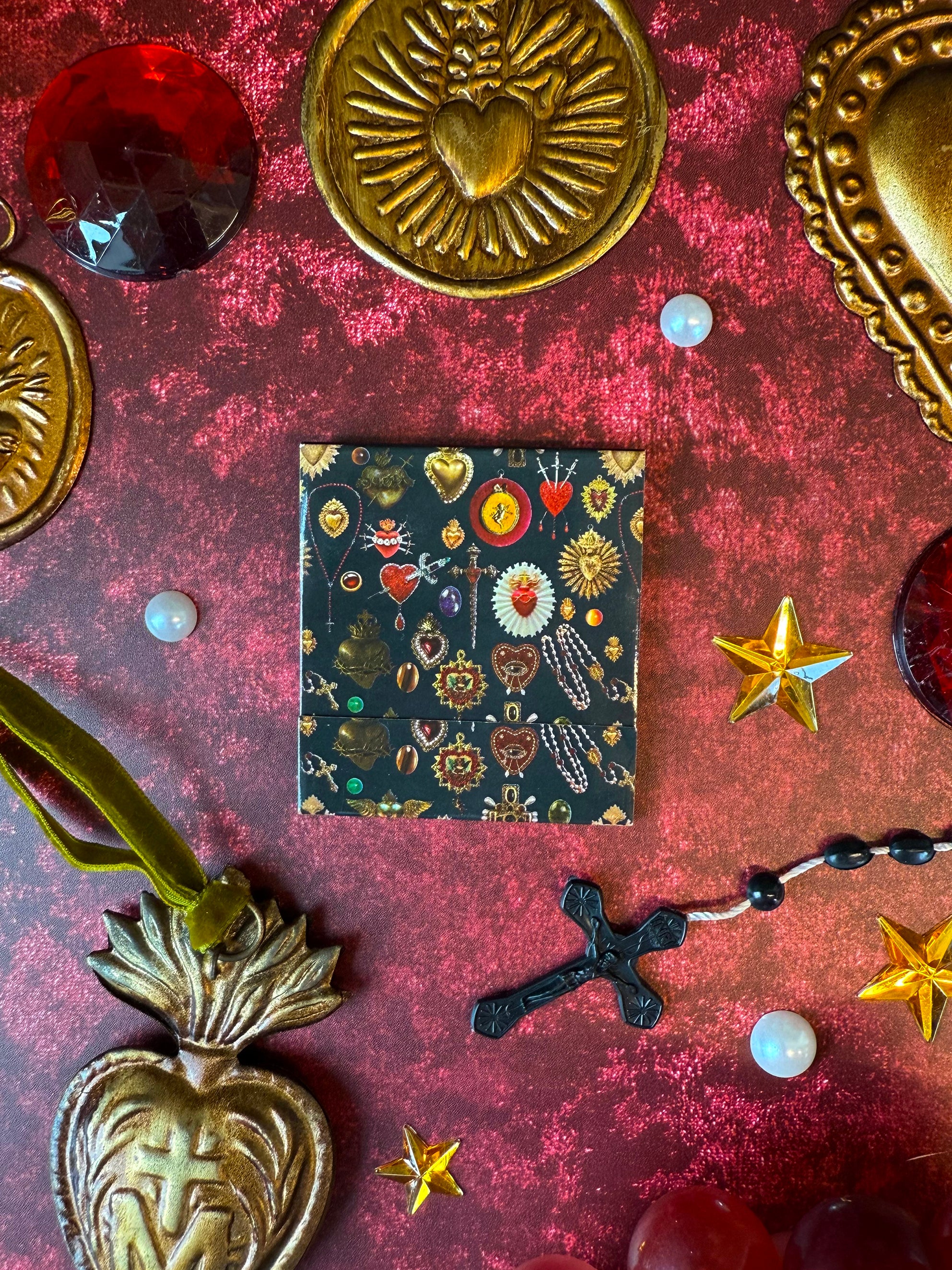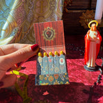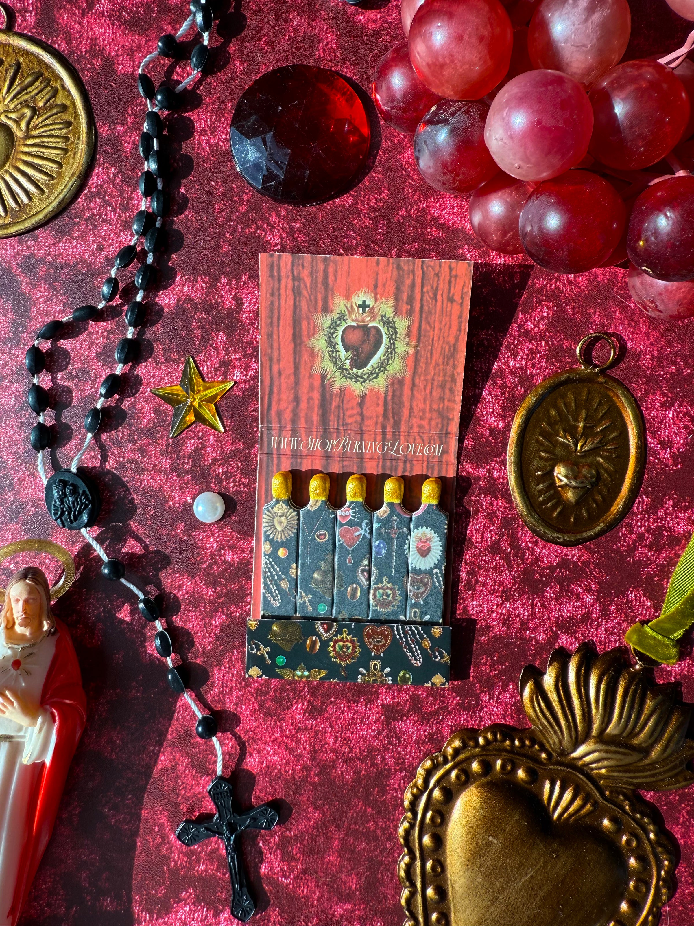 This is the perfect matchbook for sinners and lovers alike! It features our iconic sacred heart print- serving sacred, sanctimonious Catholic guilt. Open the matchbook to uncover 10 gold-tipped matches - each one covered in the same print!
