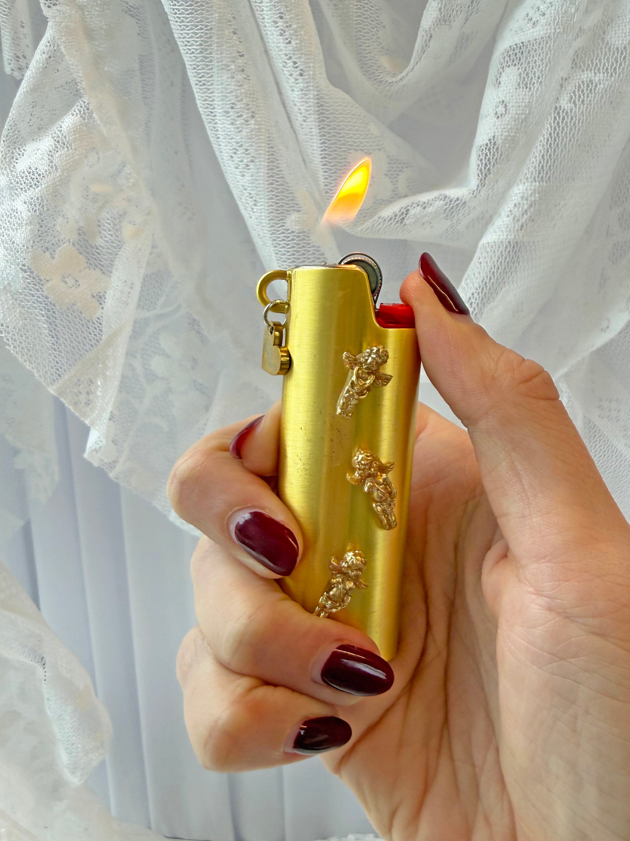 Never be seen with a boring old lighter ever again! This beauty features a gold finish with GORG cupid charms all over! The best part about these cases is that when your lighter dies, you can just pop a new one in!