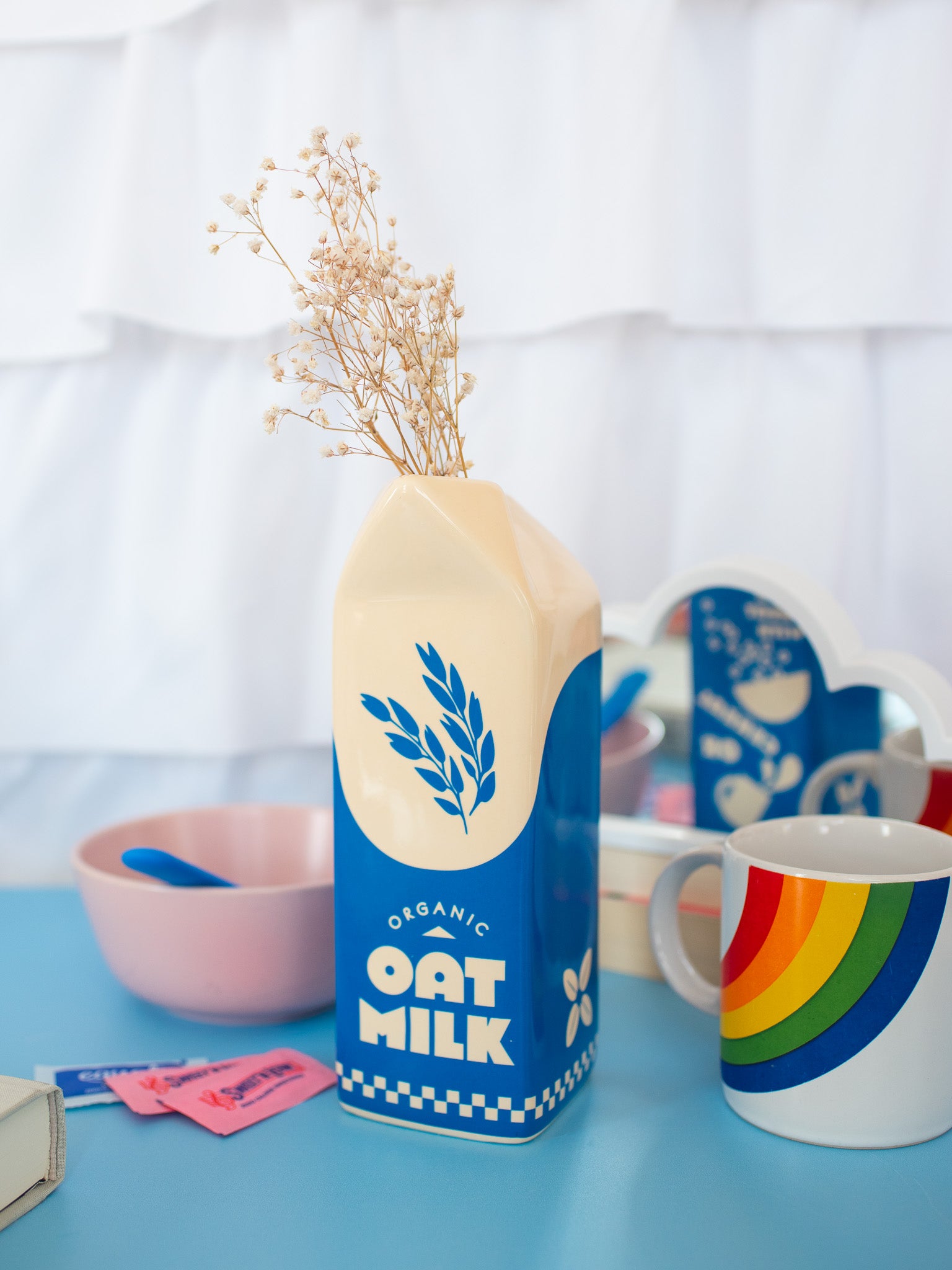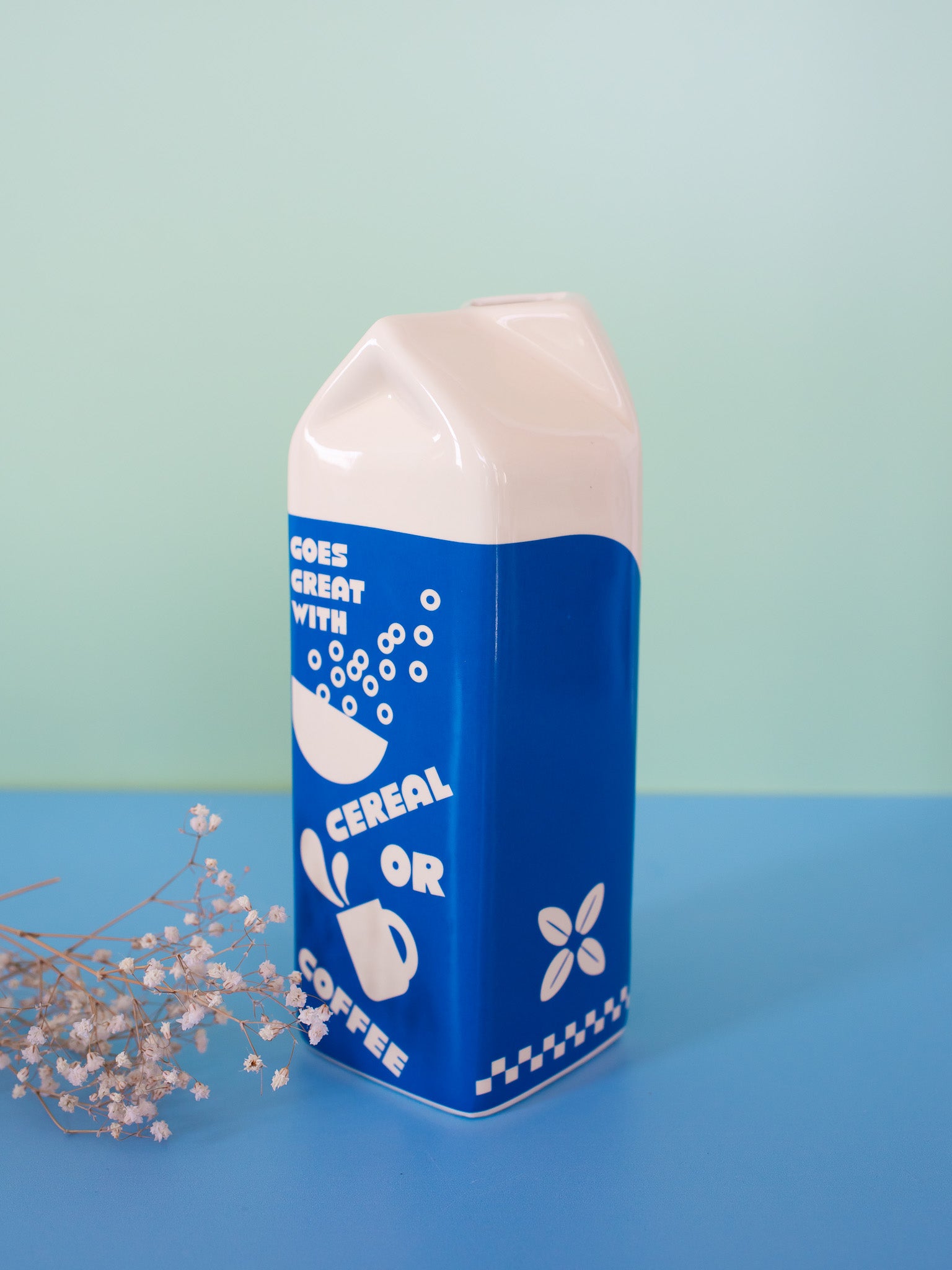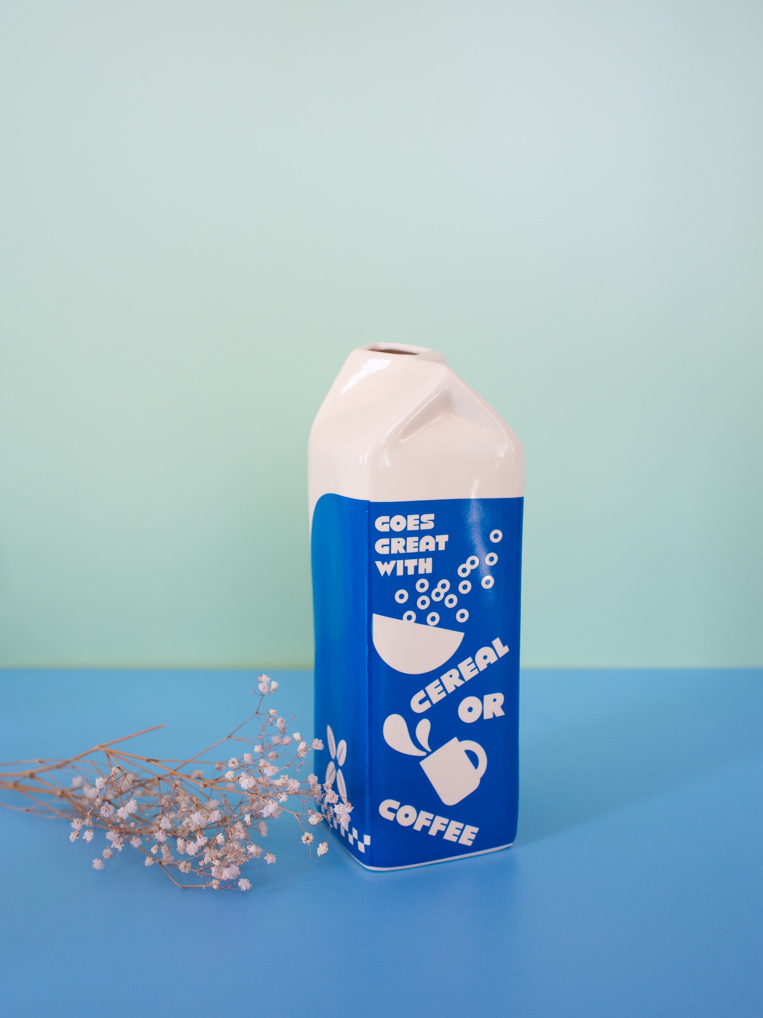 The milk carton design is soooo cute! Perfect for fresh or dried flowers! Adds a pretty pop of blue and white that can go with many different decor styles.